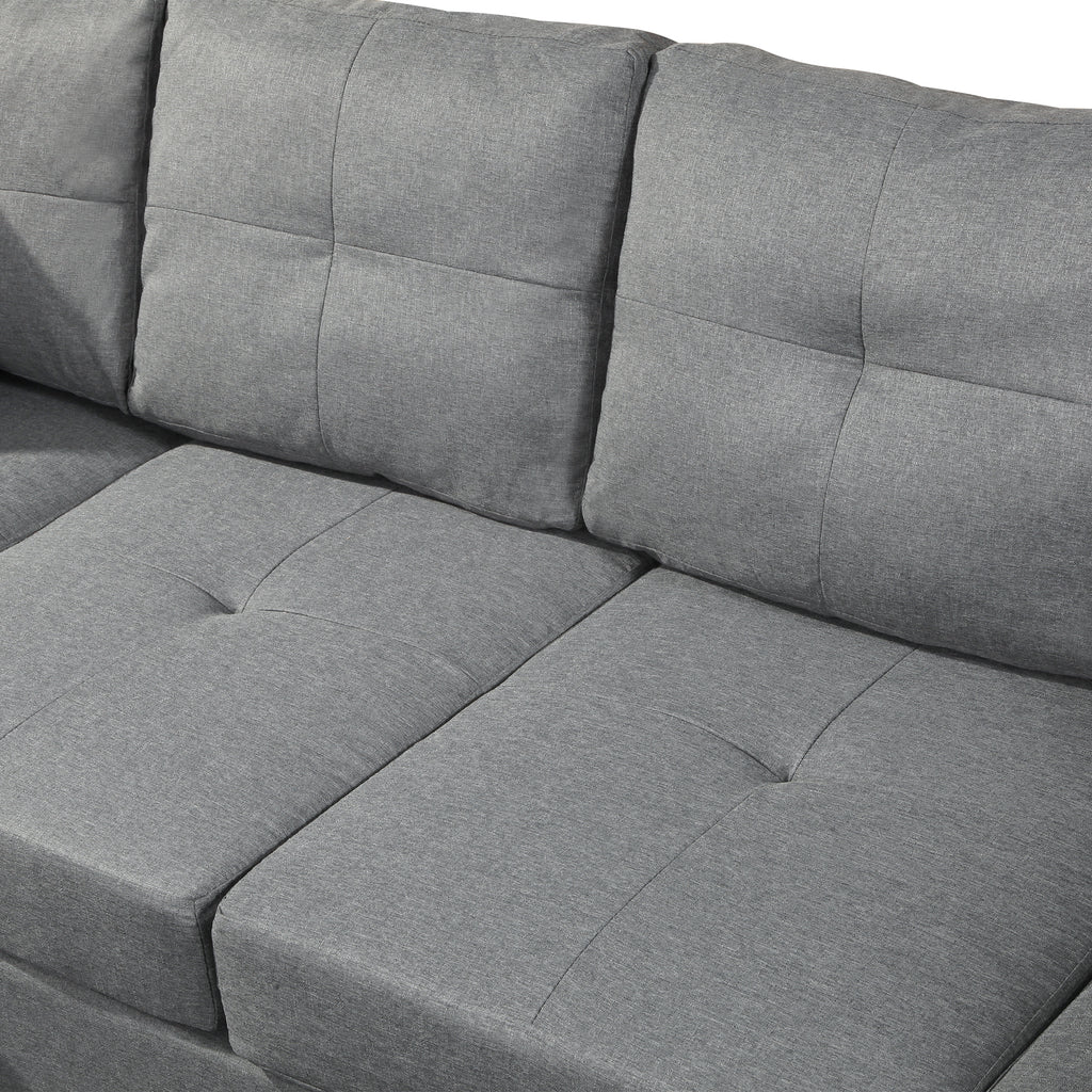 - 3-Piece sofa with right Right Hand chaise and storage ottoman (Gray)