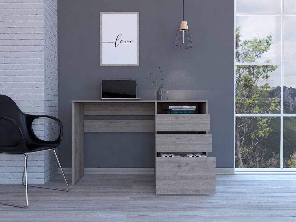 The computer desk is a classic solution for remote learning or working from home, designed for spaces with limited room. With three spacious drawers and one shelf, it keeps your workspace neat and organized while you work or study.