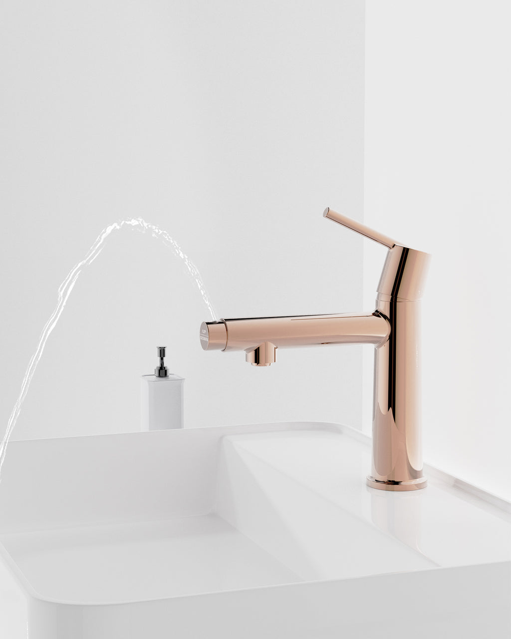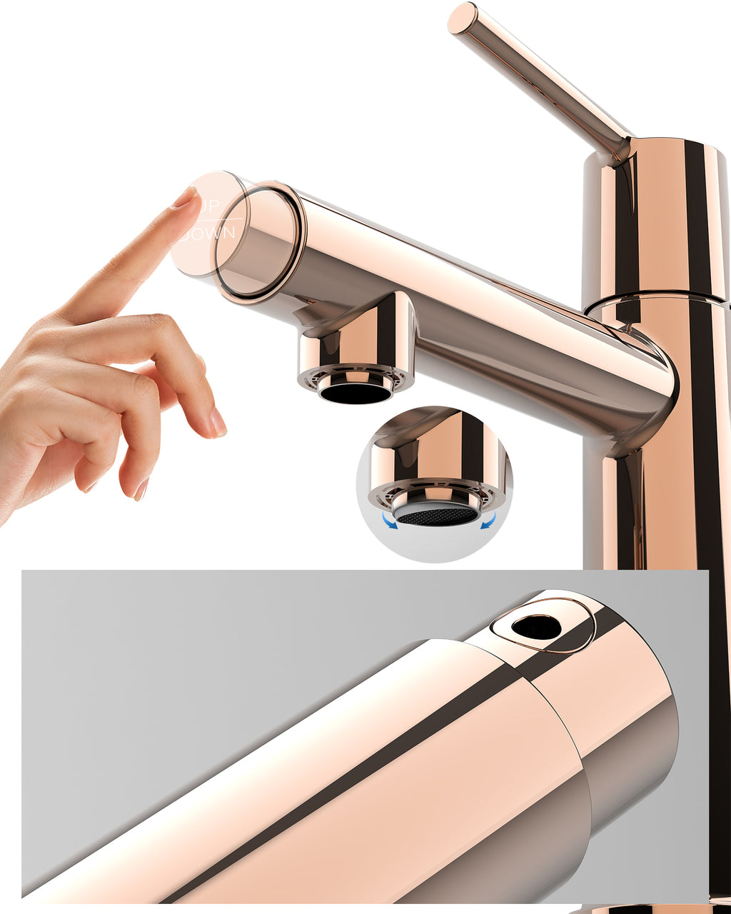 - [Design] Single handle bathroom faucet lever design for easy control of flow and water temperature Soft-touch water flow from the aerator without splashing.Fountain and Flow ModeTwo-in-one function: One-click switch between fountain and flow mode.