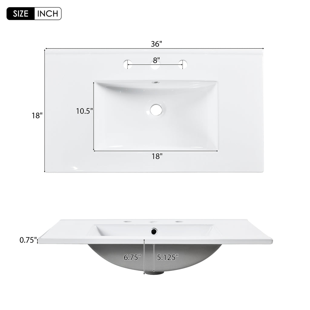 - [36'' Ceramic Sink]The surface of the ceramic undercounter basin is smooth, easy to care for and not fragile. At the same time, you can prepare a 8'' center faucet to match the basin well.