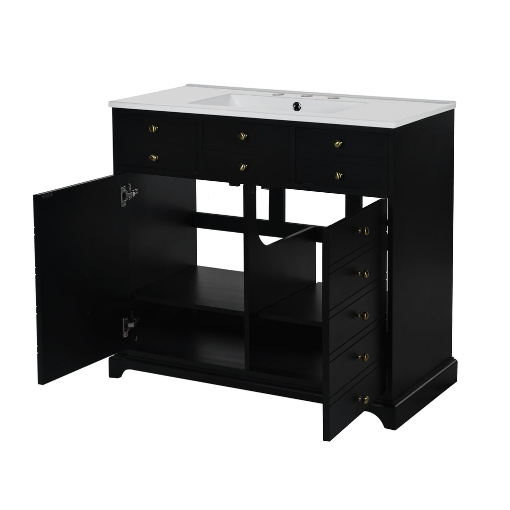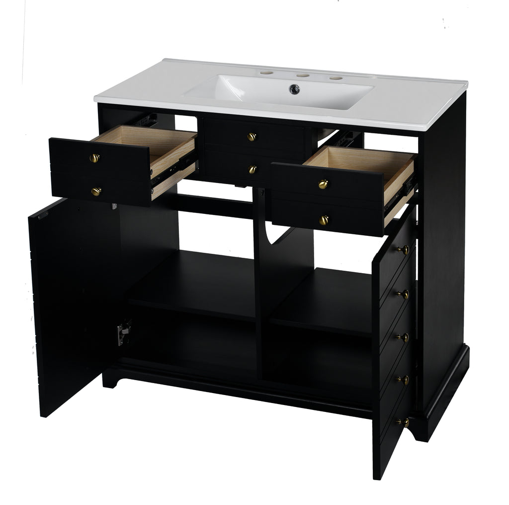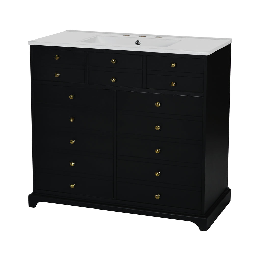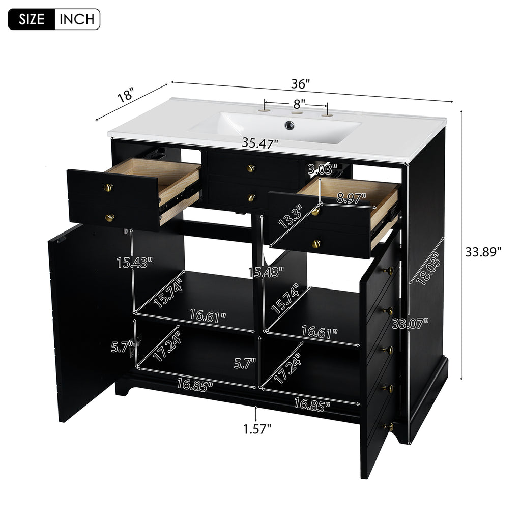 - [ Multi-Purpose Cabinet & Concealed Storage ] Are you looking for stylish and functional storage solutions for your bathroom? Our bathroom vanity provide ample space for all your toiletries and bathroom essentials. The combination of the cabinet body and the drawer perfectly stores all kinds of bathroom products and keeps the necessities away from water stains and dust. Soft-close doors and drawer fronts feature a water-resistant paint finish for durability.