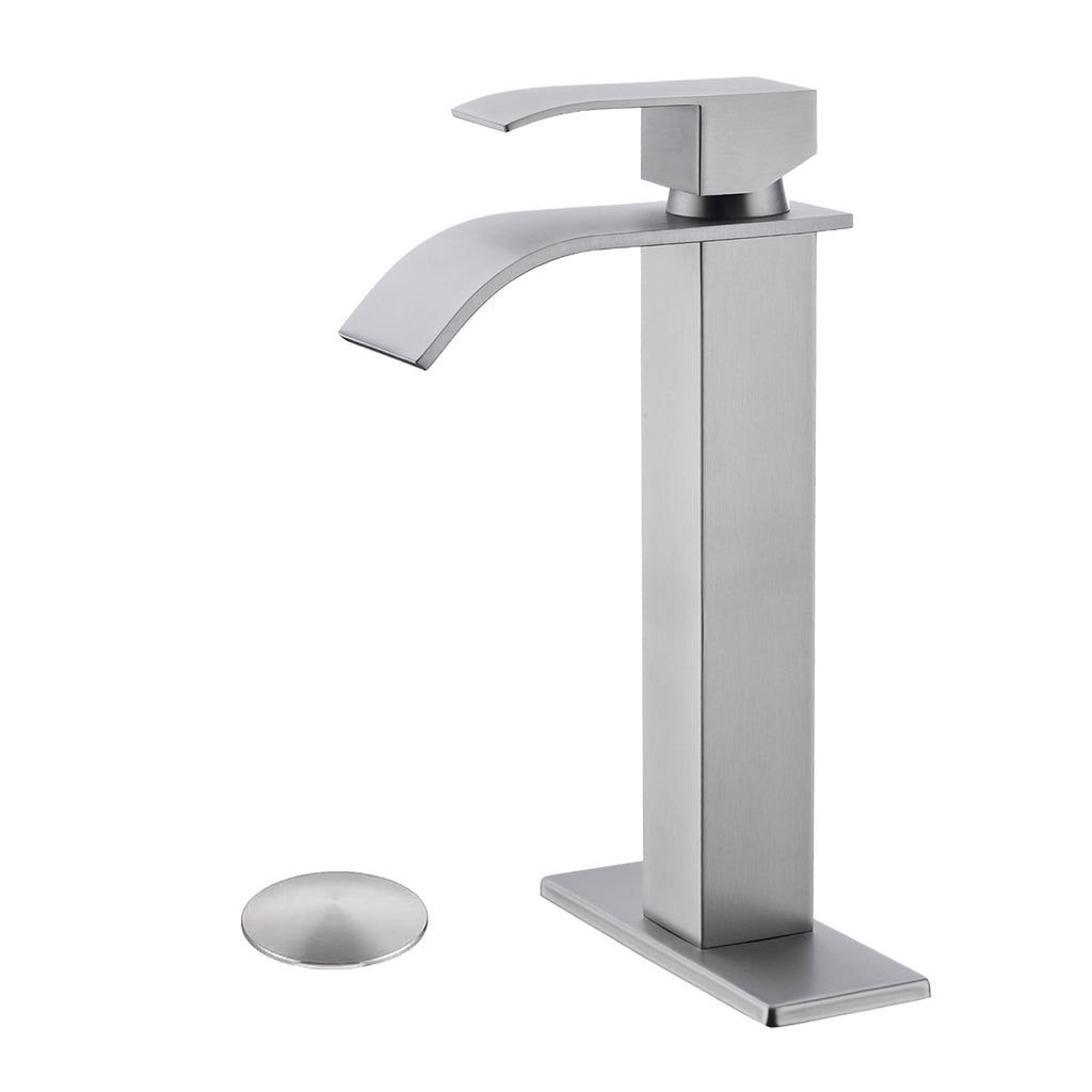 - Bathroom sink faucets feature single-handle handles that make it easy to adjust to the right water flow and temperature.