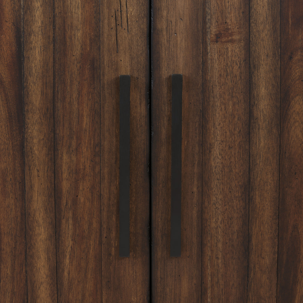 - The wood is hand-stained in a natural multi-step burnished dark tobacco finish to highlight the natural grain and knots of the wood