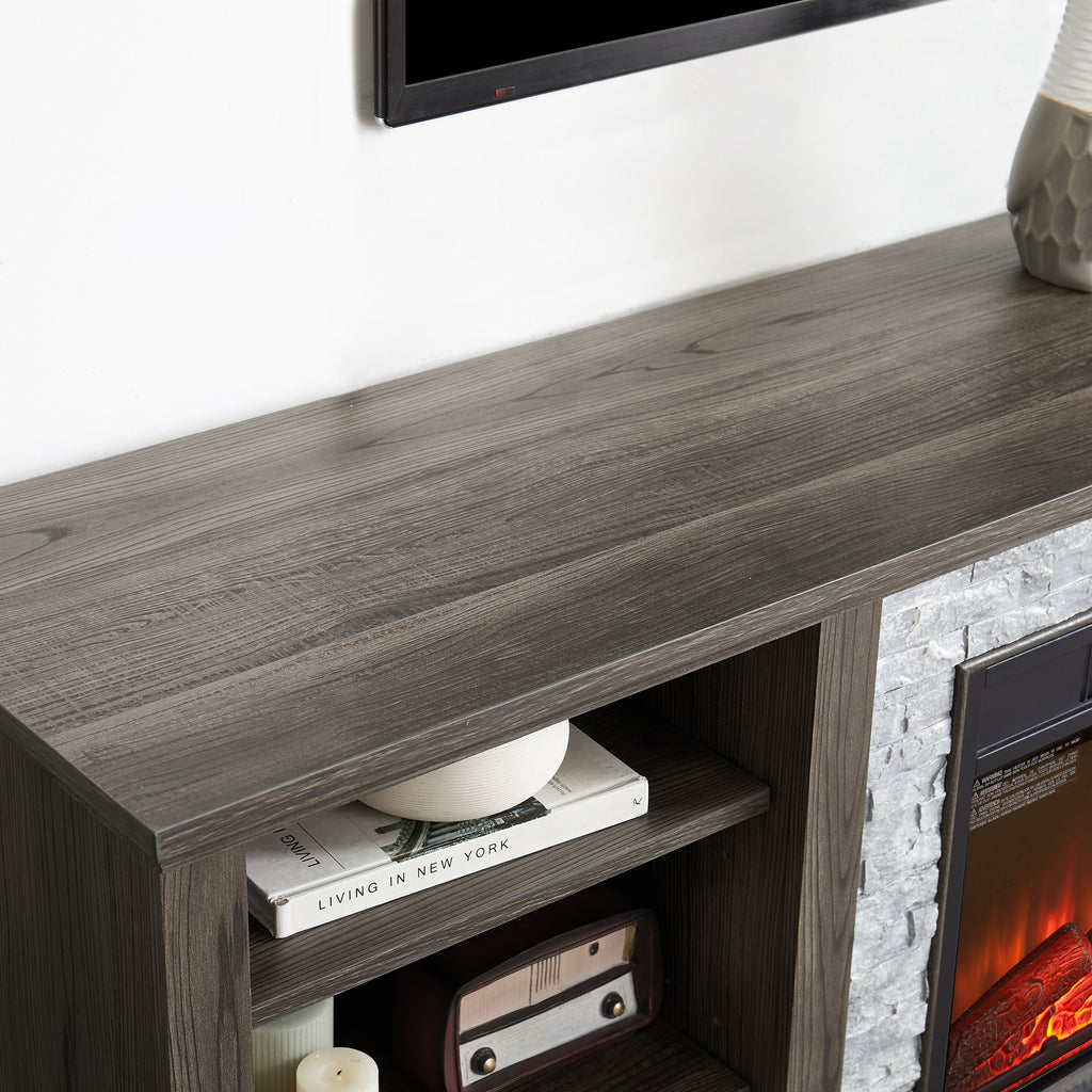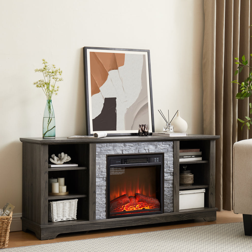 - [Your Home Entertainment Center] With a width of 58.31'', this fireplace provides perfect space for most TVs up to 65'', and ample amount of storage space for all your consoles, DVD players, and any other home entertainment gadgets.
