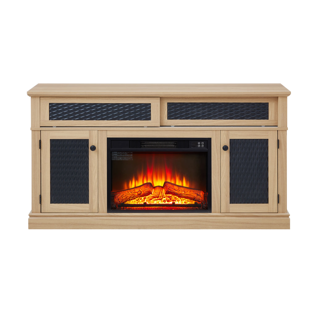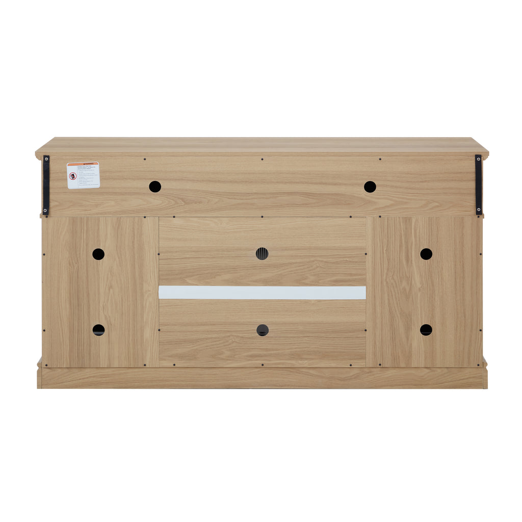 TV Stand Dimensions: 58.27'W*15.35'W*31.7H Largest TV Size: 65'' Body Color: OAK Material: MDF + PB Number of Cable Management Cutouts: 8 Number of Adjustable Shelfs: 3 Fireplace Power Rating: 1,400 W / 4,777 BTU Temperature Setting: 62℉to 82℉ Fireplace Timer Setting: 30 minutes – 6 hours Flame Brightness Levels: 3