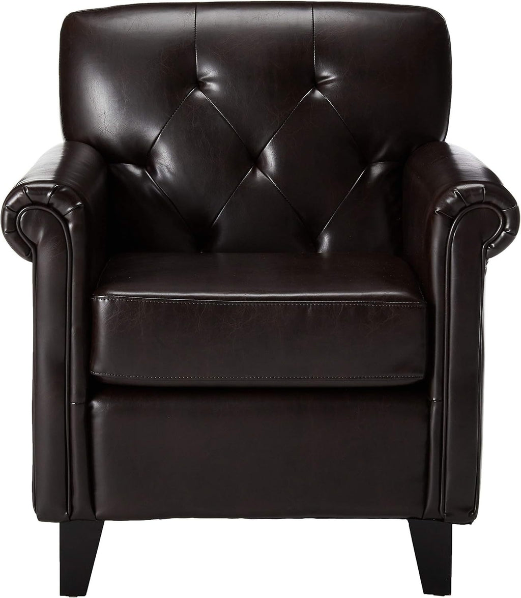 - This tufted club chair allows users to relax in style. Constructed in bonded leather with a tufted backrest, this comfortable club chair is great for small spaces and functions as a great place to take a nap or read a book.