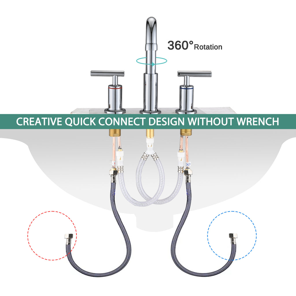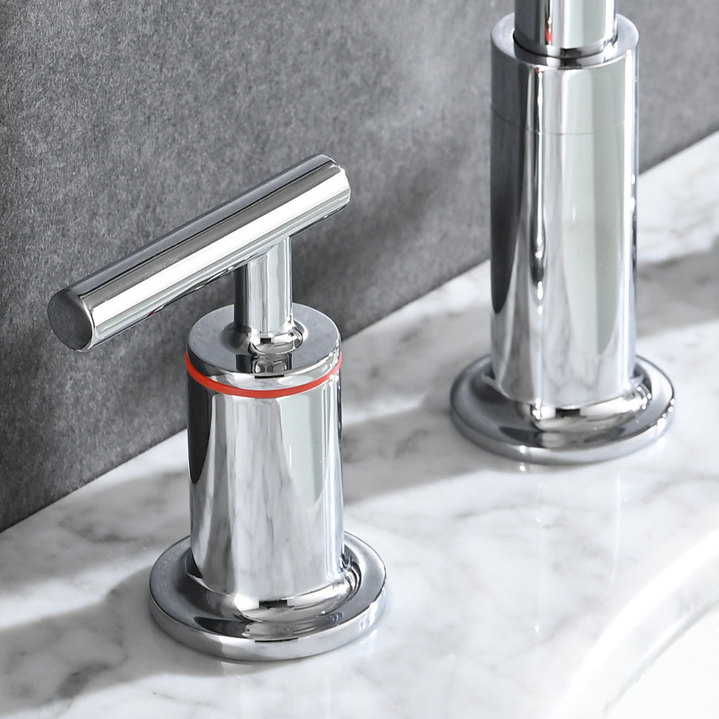 - Drip-Free operation ceramic disc valves prevent from leaking. 3-hole 2 handle design more precise switch of hot & cold water. Easy to operate.