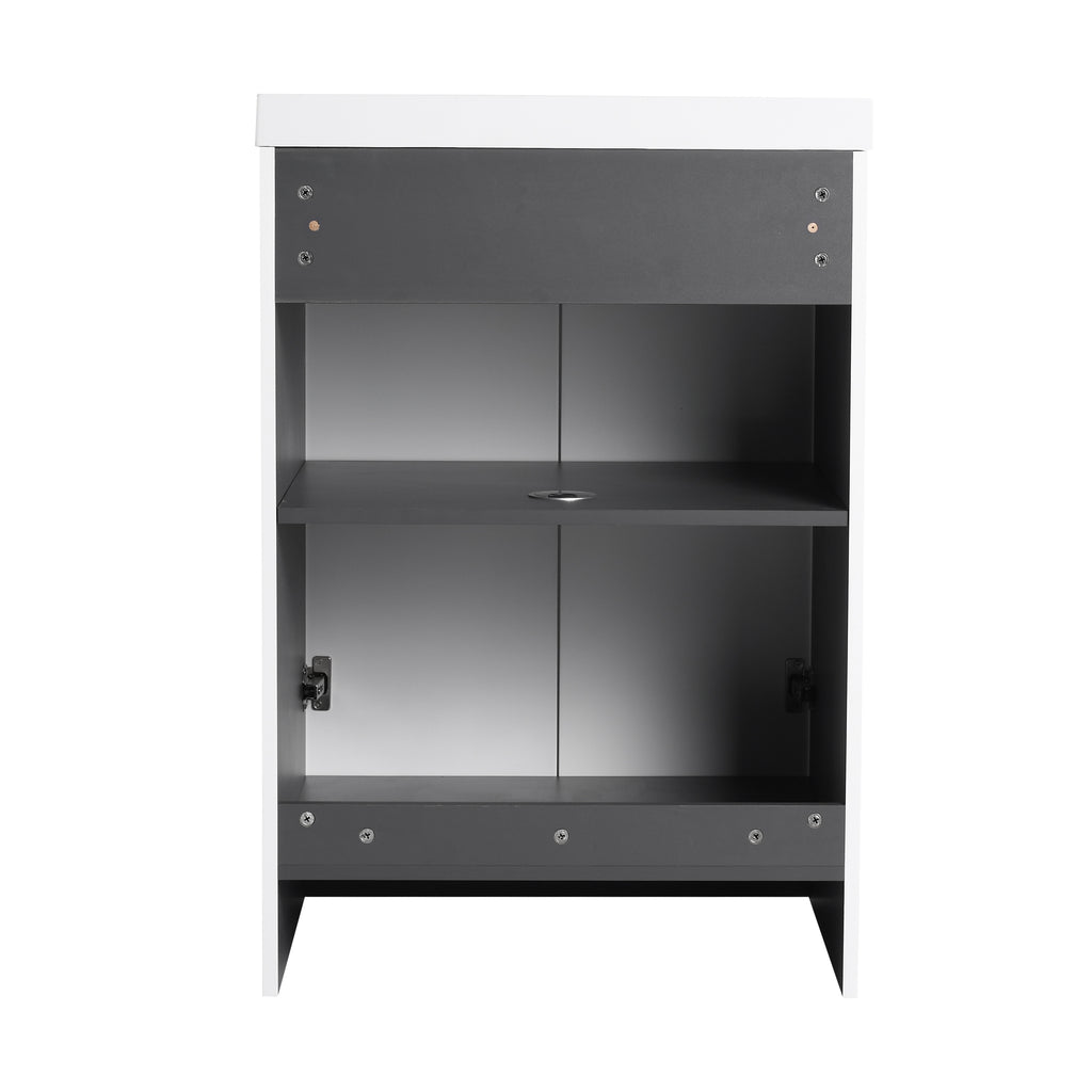 Our design is derived from life, close to reality, has a bright modern style, and is ergonomic. The bathroom cabinet and basin integral design make the product more concise and easy. The bathroom cabinet has its own adjustable shelves inside, providing a lot of extra space for the bathroom.