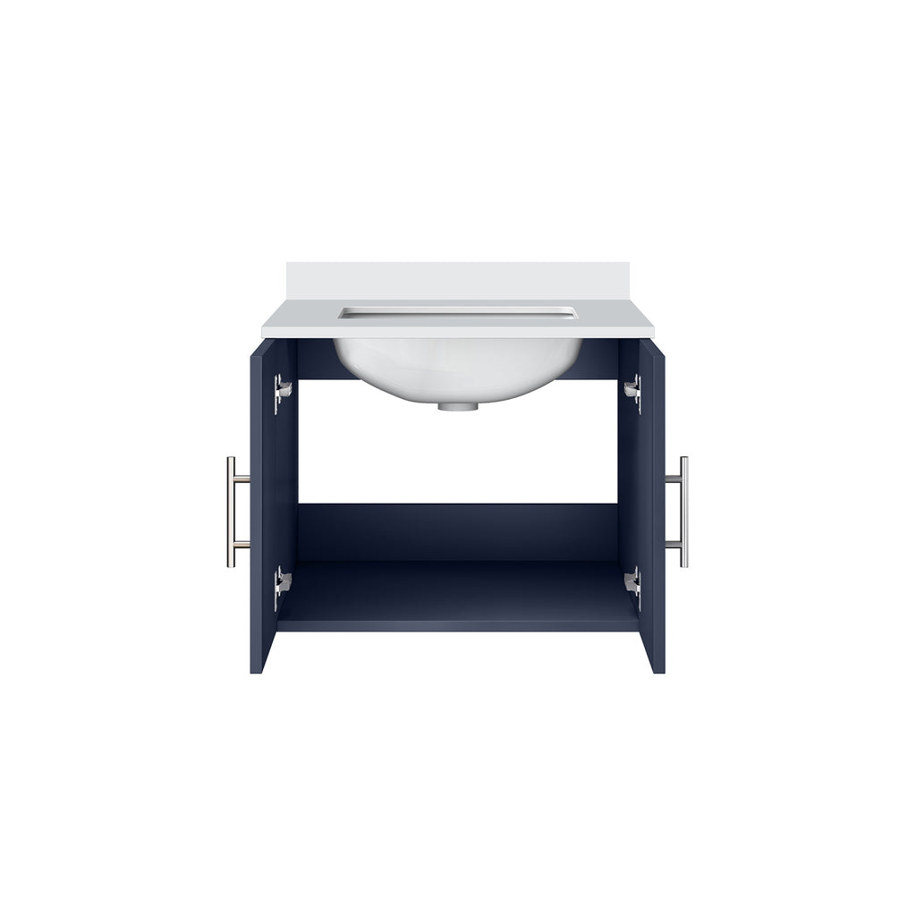 - Vanity countertop is pre-drilled for a single-hole faucet for easy installation