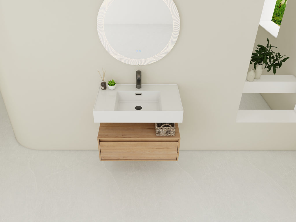 - With its timeless design, this vanity offers a peaceful and tranquil start to each day with its soft-close drawer and sleek, floating design.