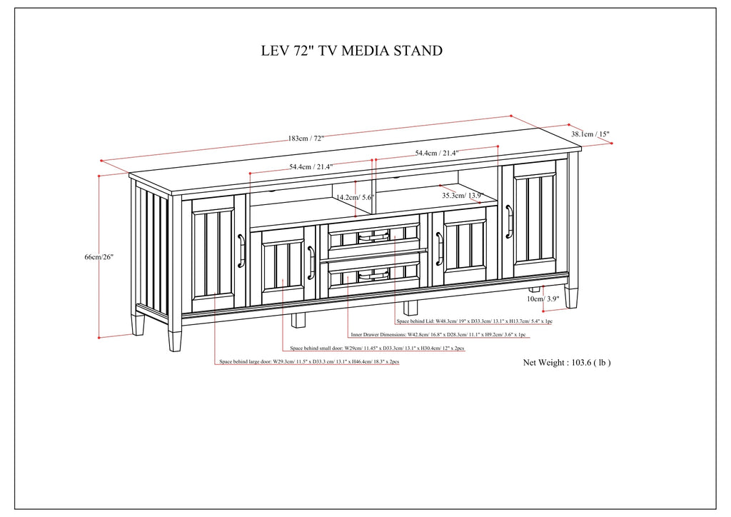 - Extra wide TV Stand is perfect for TVs up to 80 inches, includes cord management cut-outs for easy installation of TV and media components.
