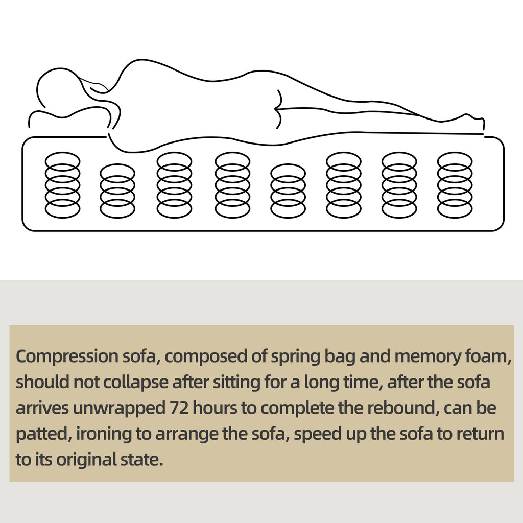 - 【Compression sofa】 No need to install, eliminate the cumbersome process of installation, the sofa contains memory foam and spring bag, the spring bag plays a role in supporting and sitting for a long time. The memory foam sofa is compressed in the express package, and after the package is unpacked, the sofa will rebound within 72 hours, and the rebound speed can be accelerated by patting and finishing.
