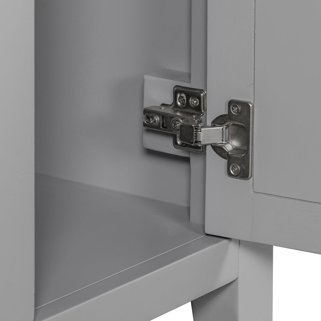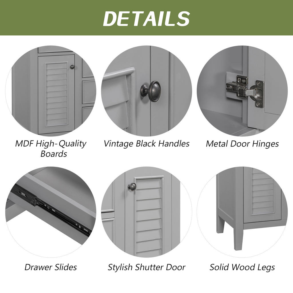 - Thoughtful Details: Considering the humid environment in the bathroom, the door hinge and drawer slide are made of stainless steel material, which is not easy to rust. The handles on the drawers and two cabinets are made of metal, creating a retro round look that is smooth to the touch and pleasant to use. In order to reduce the noise when closing the cabinet doors, the soft closing doors are selected for the cabinet doors.