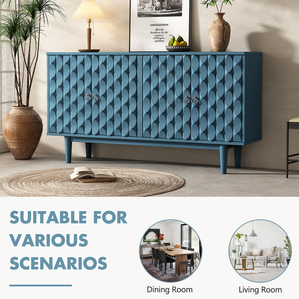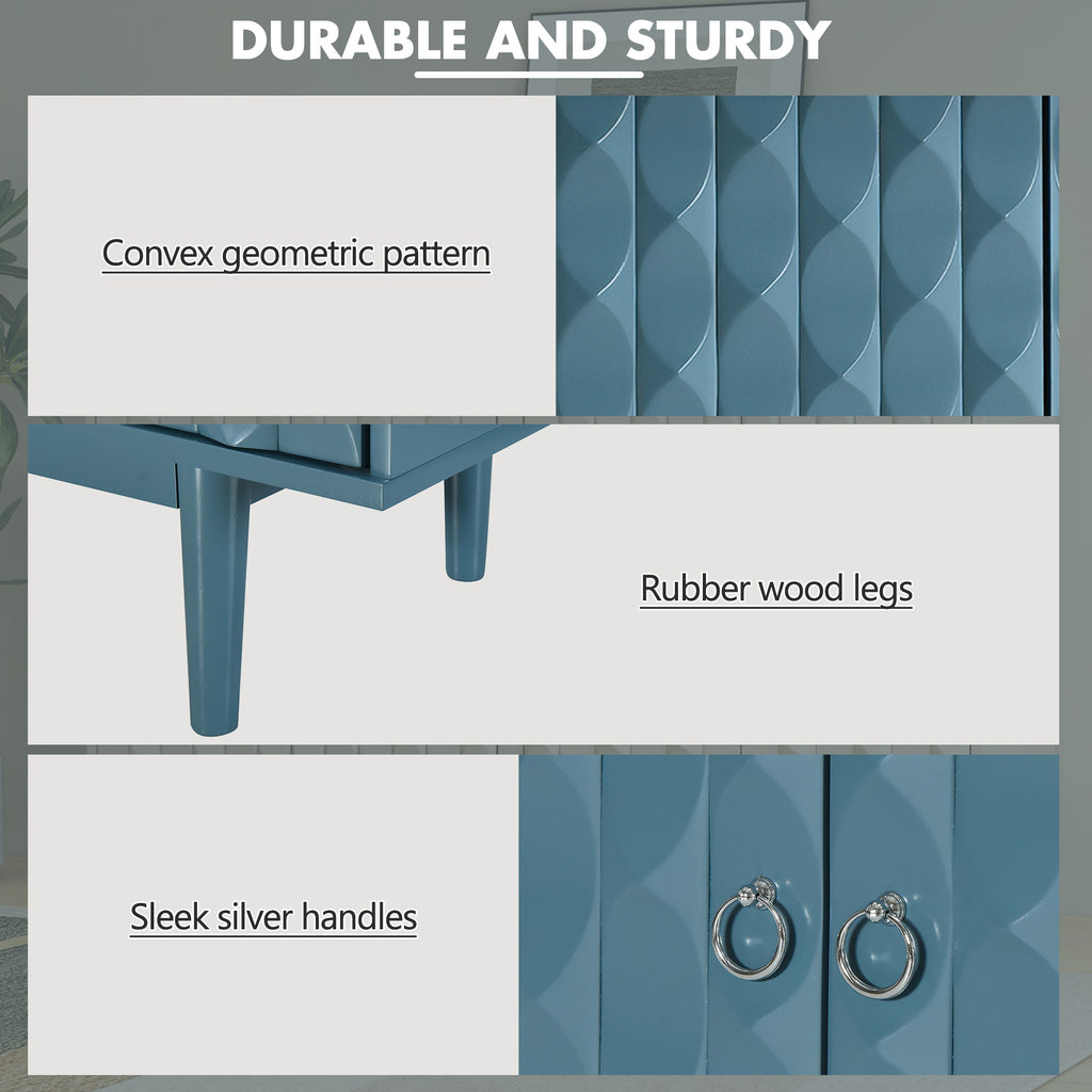 - Modern and Elegance : Elevate your space with our Modern Elegance Sideboard. Featuring a sleek, contemporary design, its cabinet doors boast a striking convex geometric pattern for added sophistication. Complemented by sleek silver handles, this sideboard seamlessly fits into any decor style, from minimalist to eclectic. With ample storage, it combines functionality with aesthetic appeal, making it a standout piece in any room.