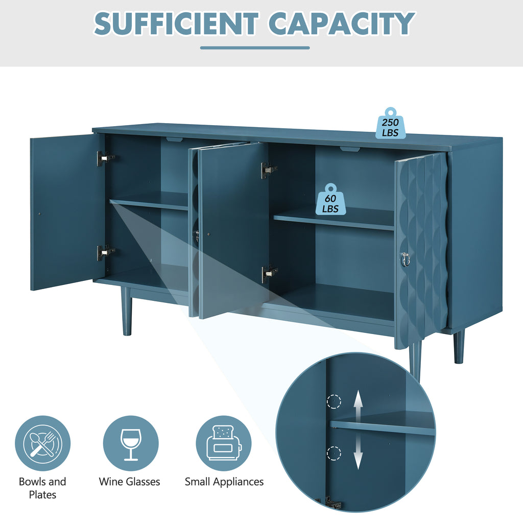 - Sufficient Capacity: Upgrade your storage with our versatile sideboard, featuring adjustable, removable shelves with shelves that can be set to one of three heights. This design offers ample capacity to store a variety of items, from bowls and plates to wine glasses and small appliances. Its customizable shelves ensure you can organize your space to fit your needs. With its flexible shelving and generous space, keeping your essentials neatly arranged. Shelf load capacity: 60 LBS.