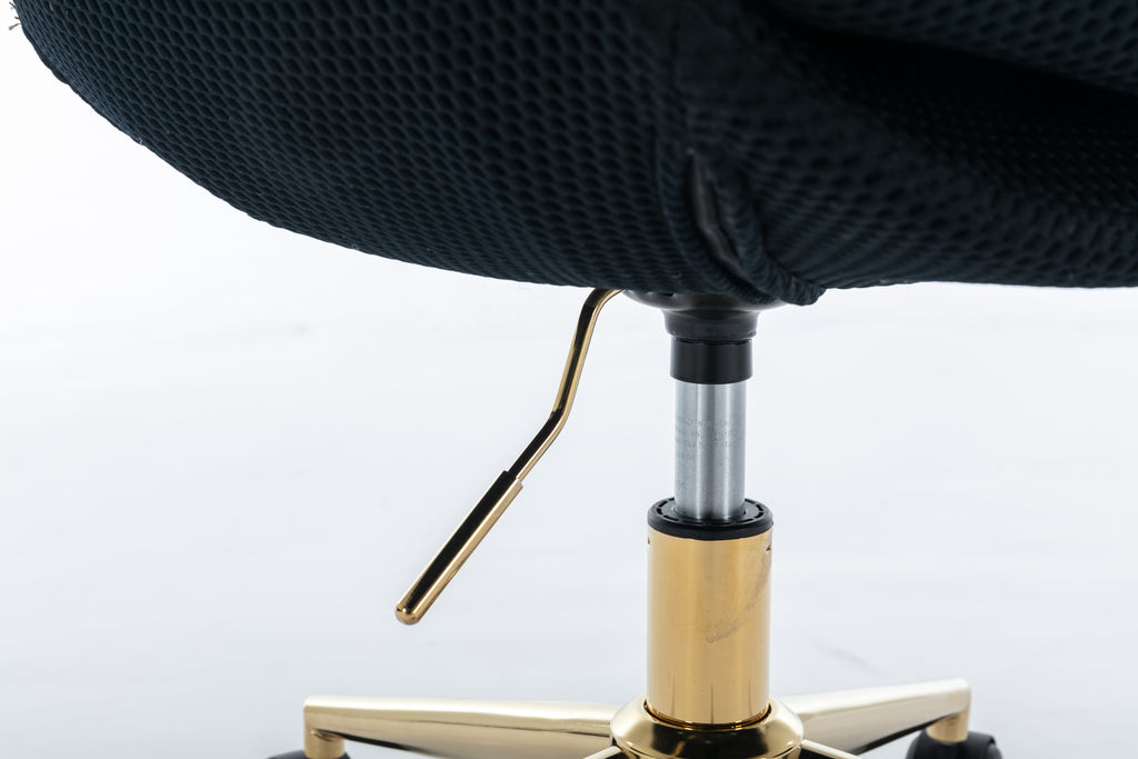 - Product Pomposition;Soft Mesh Fabric Material+Foam Filled+Metal Frame+Adjustable Gold Metal Base+360° Revolving Universal Wheels;