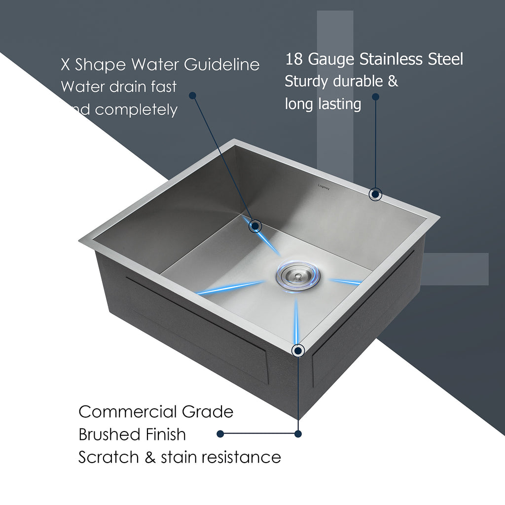 - [Quality Materials]The sink is handcrafted from the top quality food grade 304 stainless steel available on the market, creating a hard, non-porous, smooth surface that is easy to clean and doesn't build up bacteria, making the sink more durable.