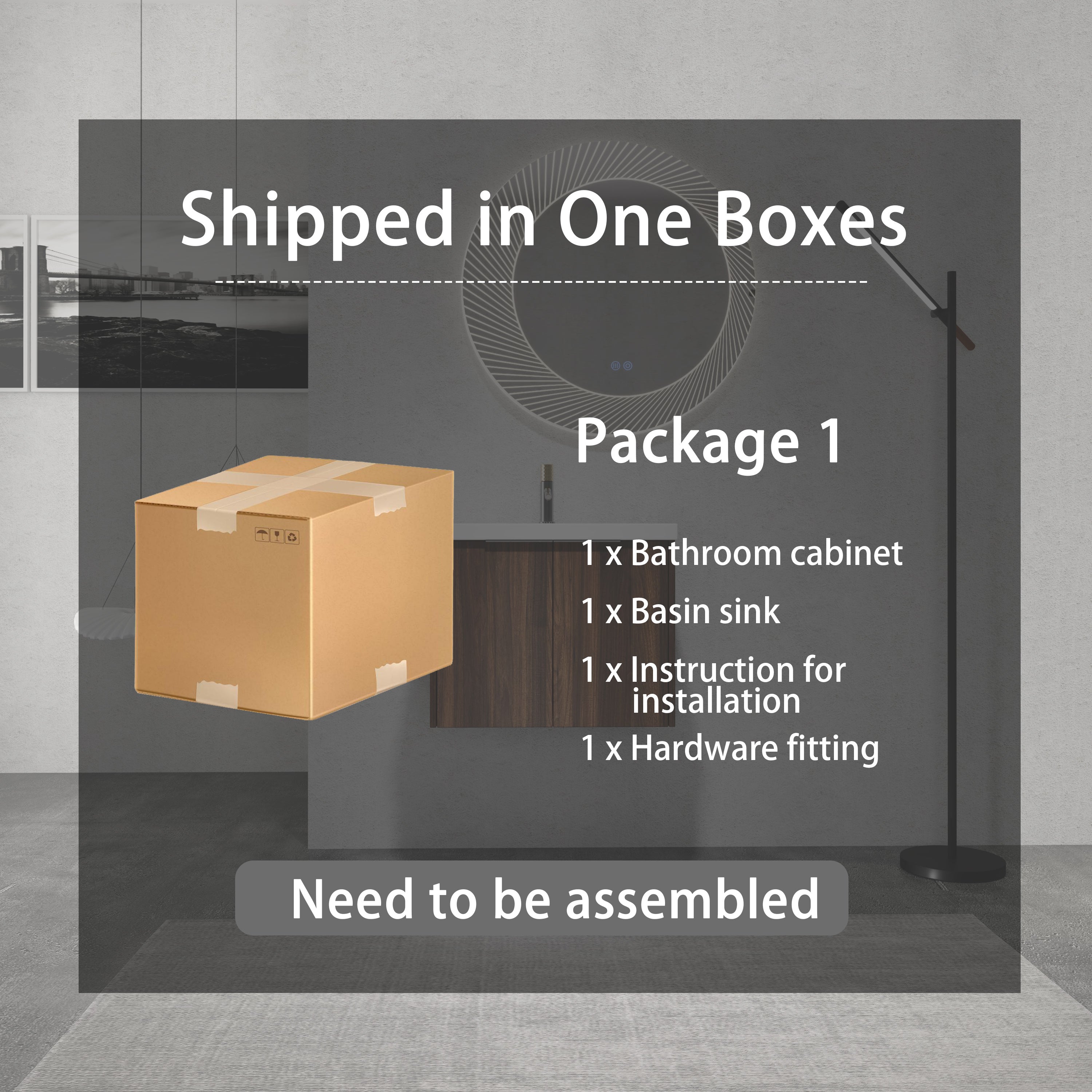 | Package includes: | - 1x Vanity Cabinet;- 1x Resin Sink |
