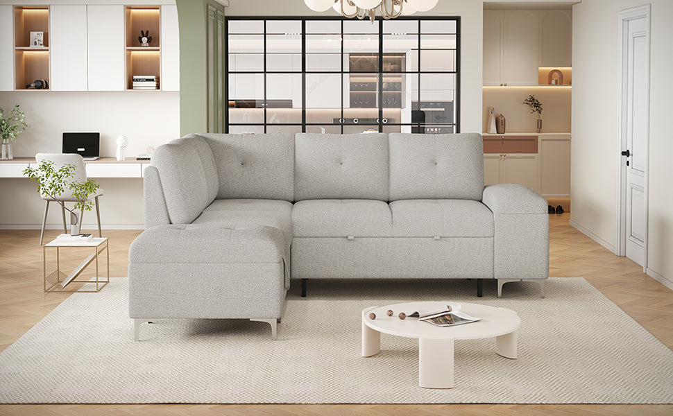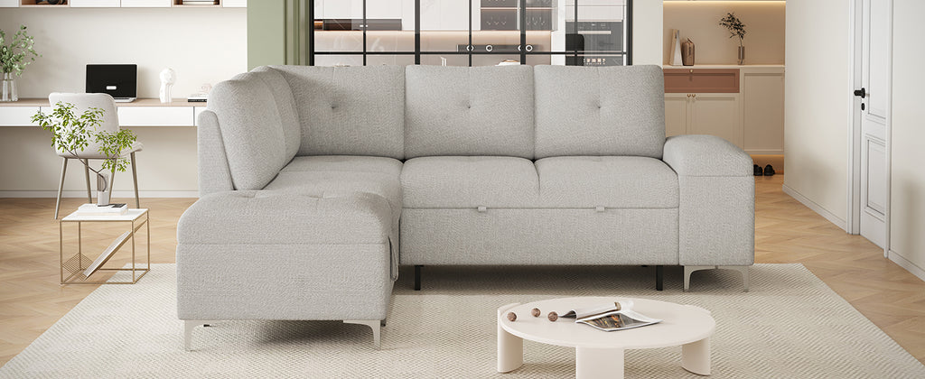 - Versatile Sofa Bed - This versatile sectional sofa offers the ultimate flexibility for any living space. Its innovative design allows you to effortlessly transform it from an L-shaped configuration into a sofa bed, providing multiple seating arrangements to suit your needs. Whether you're hosting a large gathering or enjoying a quiet evening, you can easily reconfigure the sofa to create a cozy, intimate setting or a spacious, open lounge.