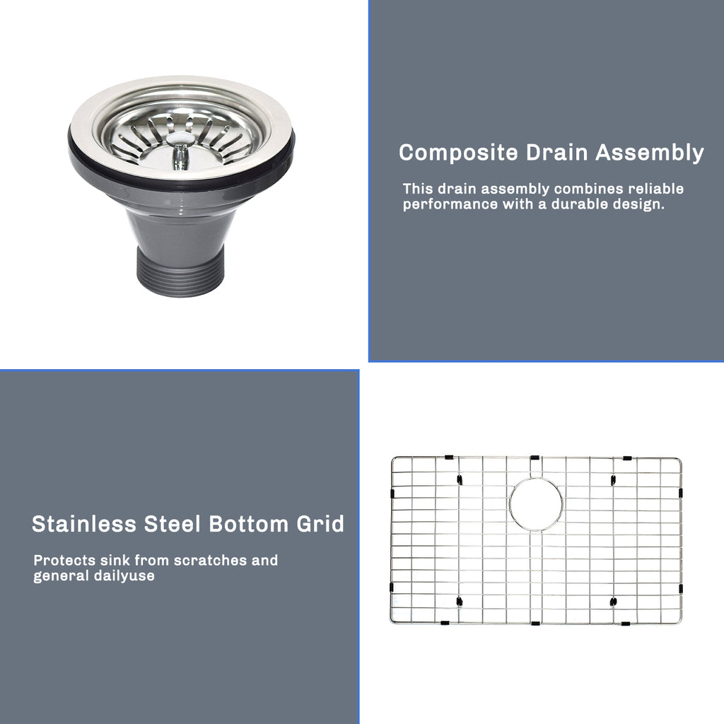 - Package include:1 x 27 inch sink bowl; 1 x 3.5' drainer; 1 x bottom grid.