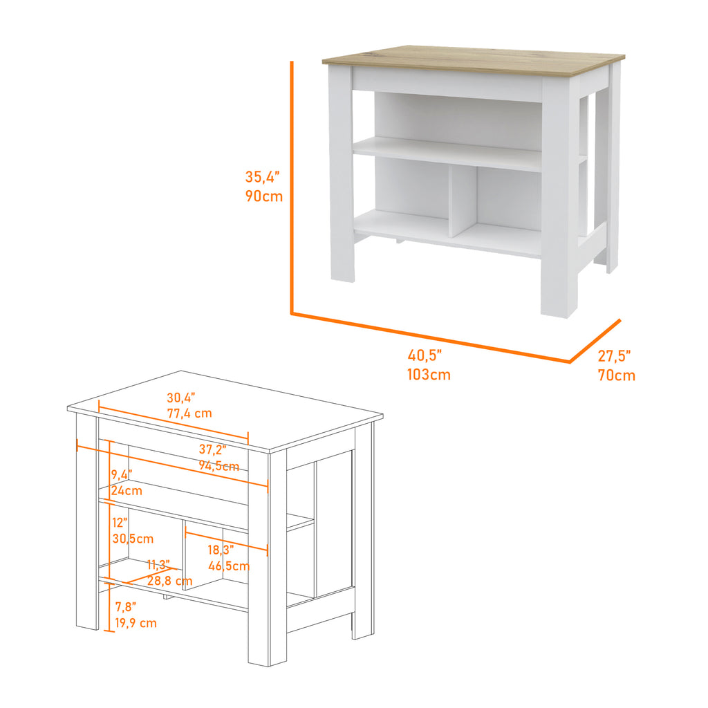 - Transitional kitchen island with ample shelving for organizing kitchen essentials