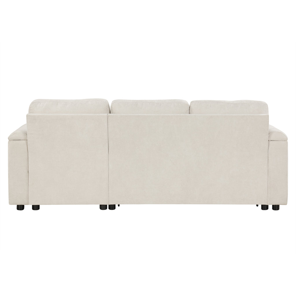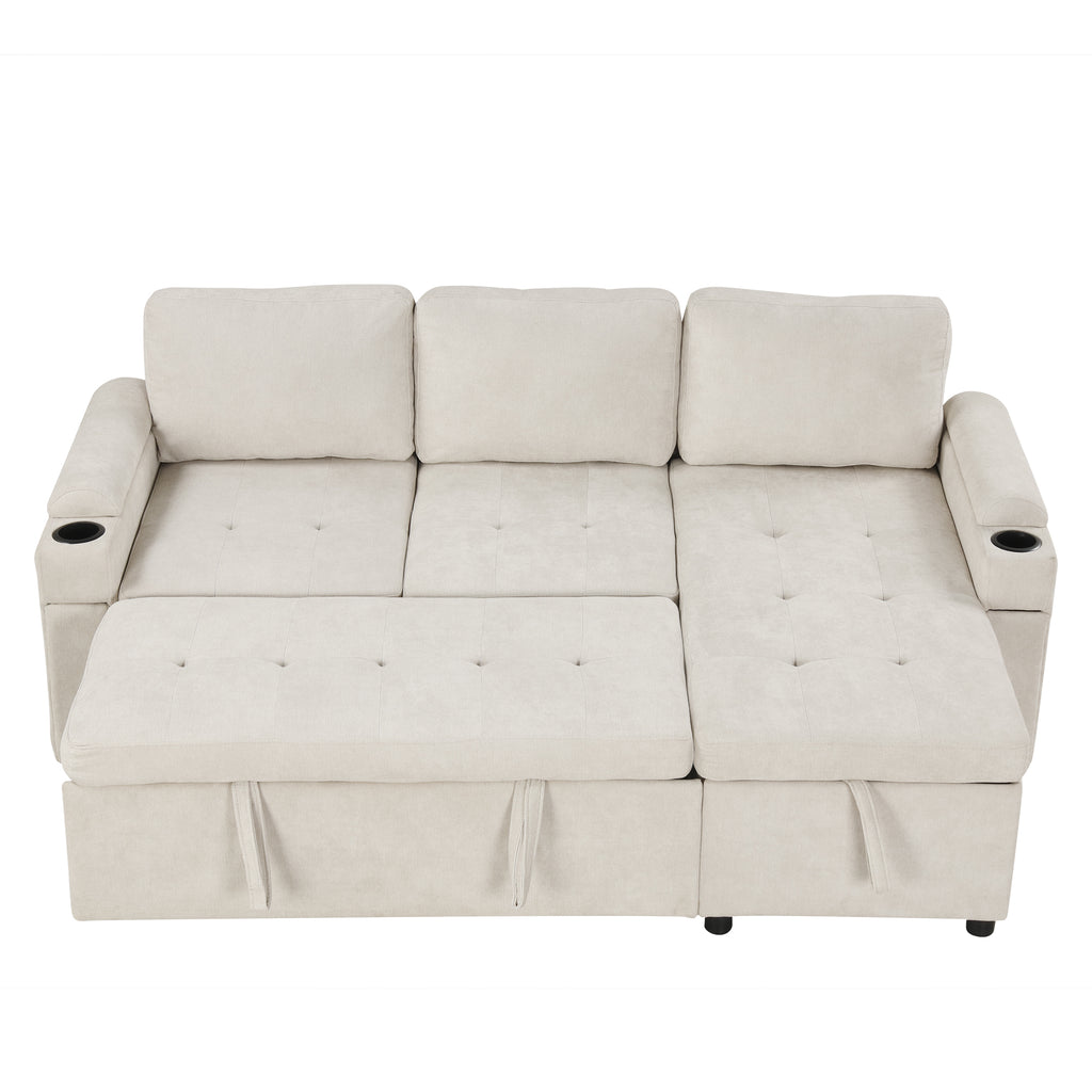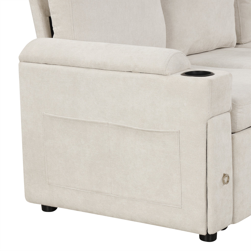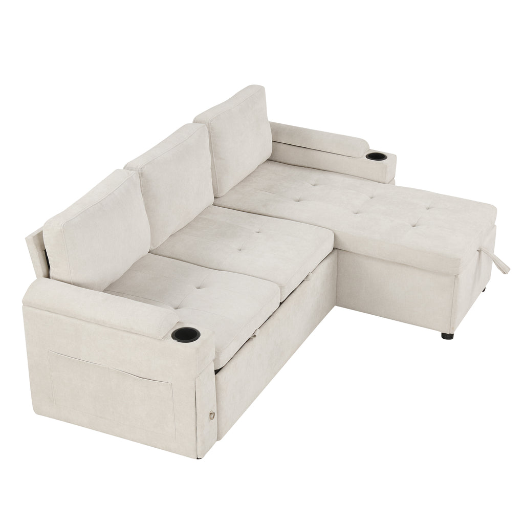 This versatile L-shaped sofa offers a perfect blend of style, comfort, and functionality. Featuring a reversible chaise lounge, it allows you to easily adapt the configuration to suit your space and preferences. The sofa provides ample storage with hidden compartments in the chaise, armrests, drawers, and side pockets, helping you keep your living area organized. It also transforms effortlessly into a sofa bed, offering a convenient sleeping area for guests. Equipped with two cup holders and two USB ports, it ensures maximum convenience for relaxing and staying connected. Crafted with soft chenille fabric, high-density foam, and a sturdy frame, this sofa guarantees long-lasting comfort and durability, making it an ideal choice for modern, dynamic living spaces.
