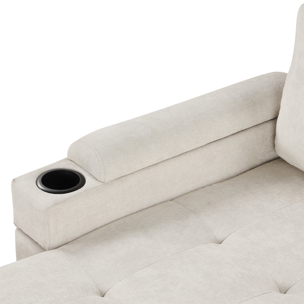 - Two Cup Holders - The sofa is equipped with two cup holders on each armrest, adding both convenience and functionality to your seating experience. These built-in cup holders provide a secure and accessible place to hold your drinks, preventing spills and keeping beverages within arm’s reach.