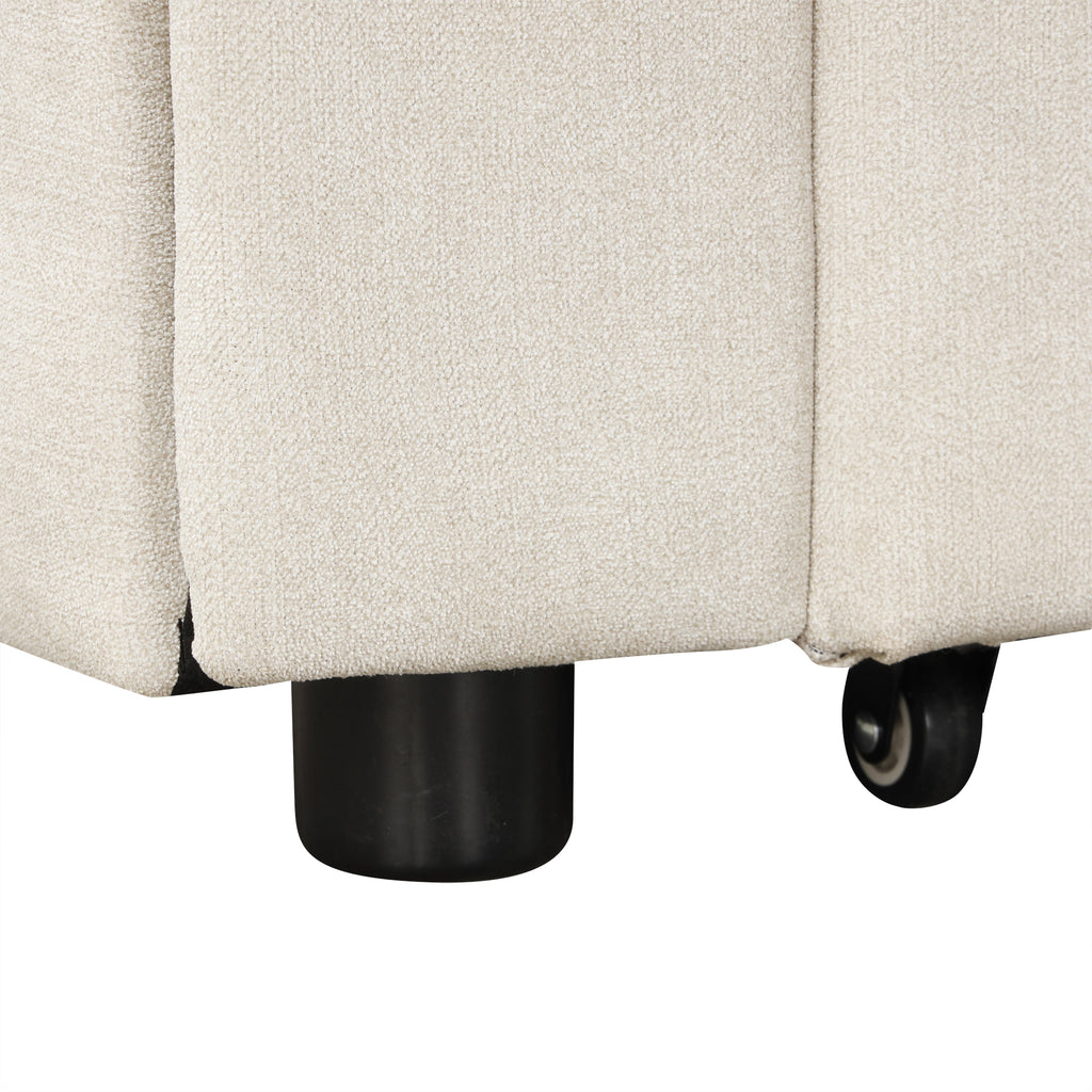 The sofa features convenient side storage pockets, providing easy access to small items such as magazines, remote controls, or personal accessories. These practical pockets keep your essentials within arm’s reach, helping you maintain a tidy and organized living space.