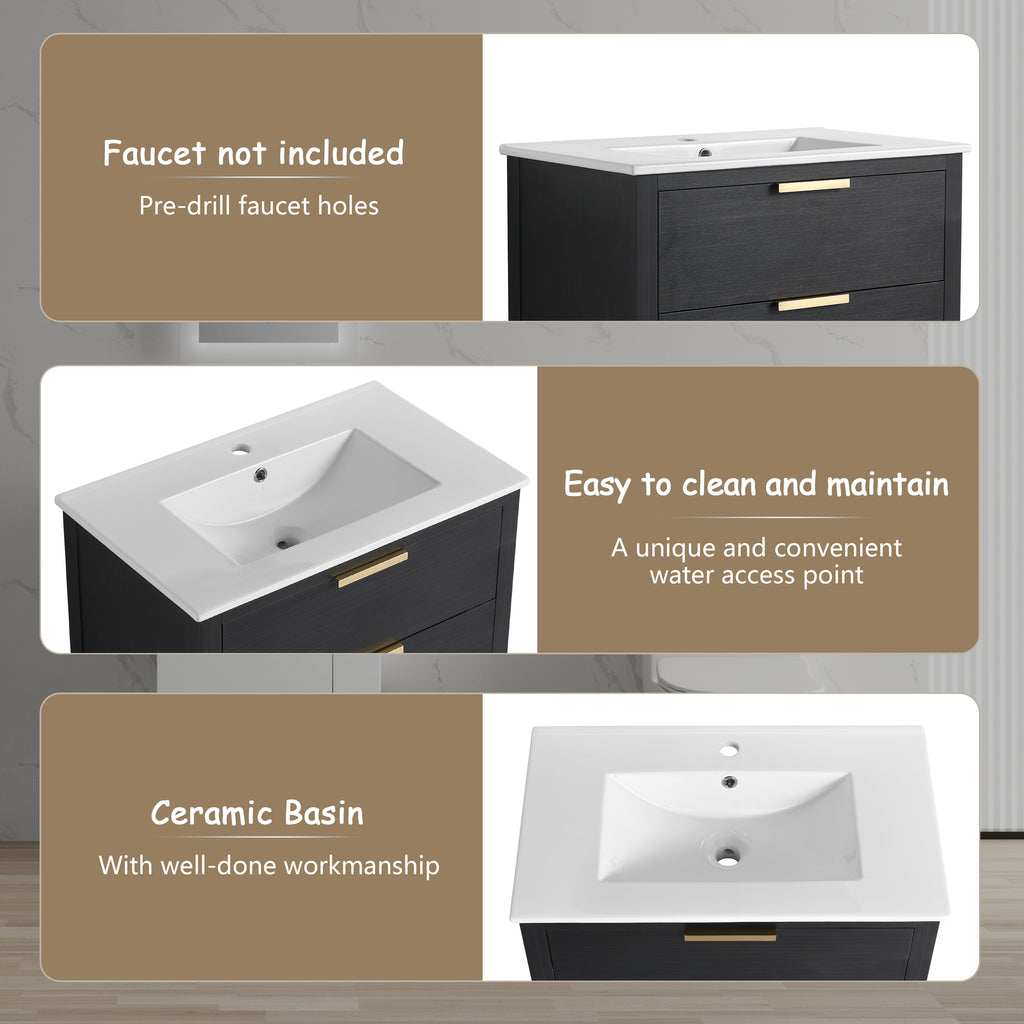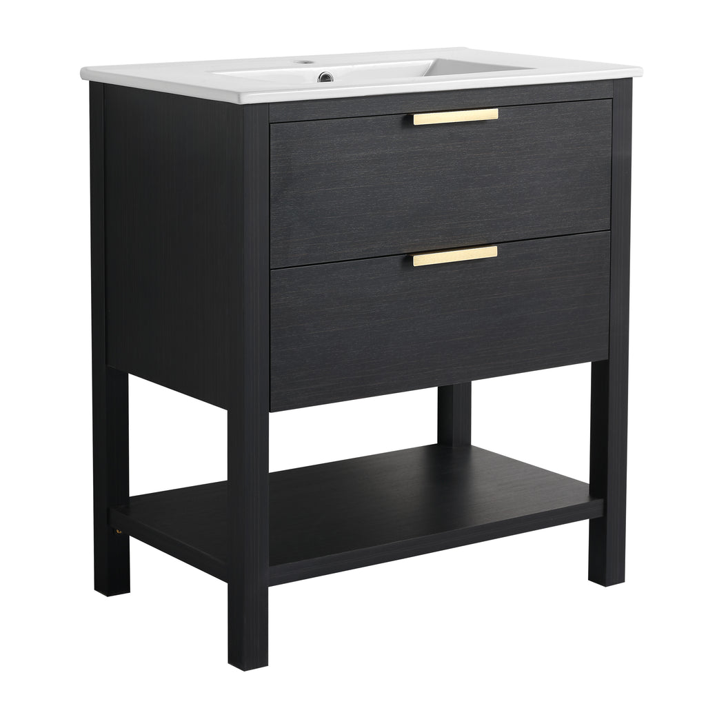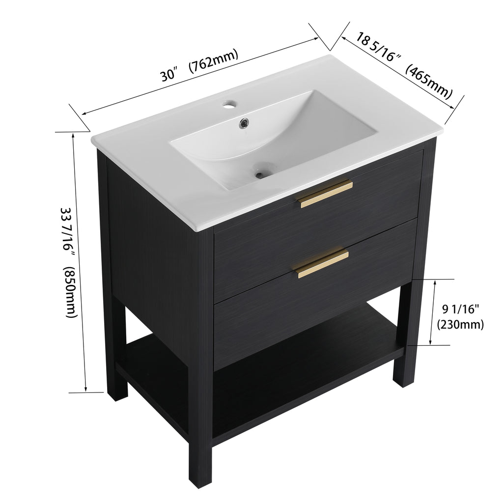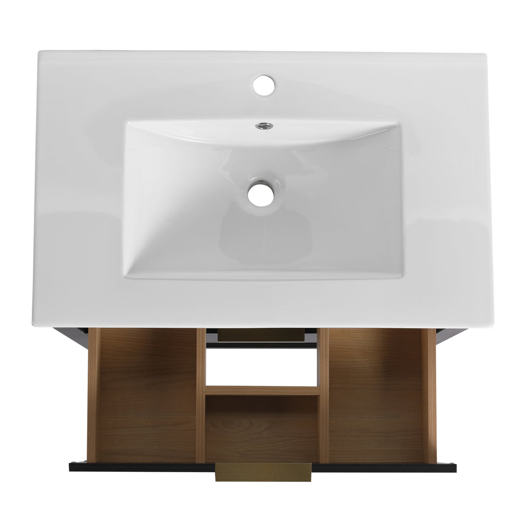 | Package includes | - 1x Vanity Cabinet; - 1x Ceramic Sink; - 1x Shelf; - 4x Wood Feet; - Parts Package |