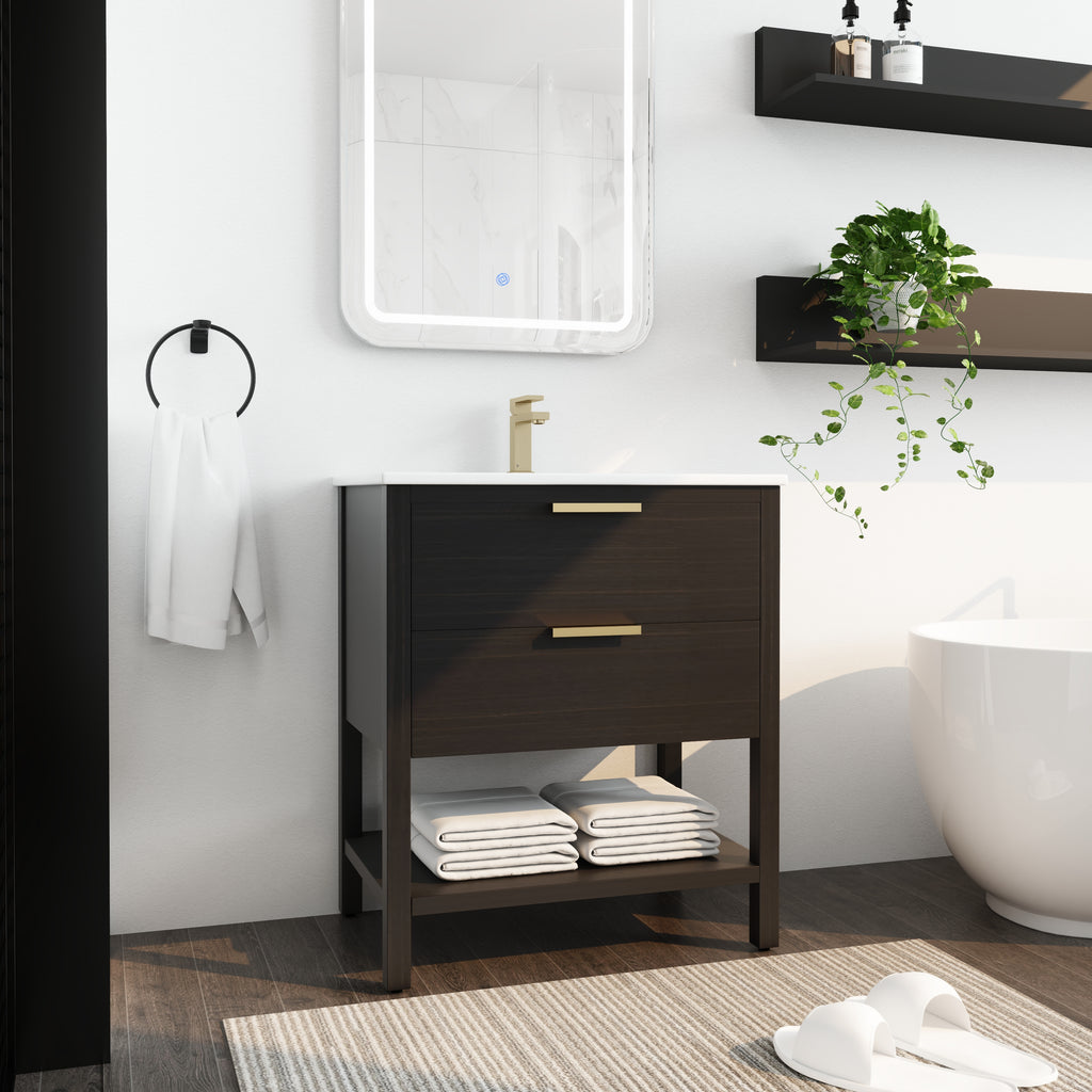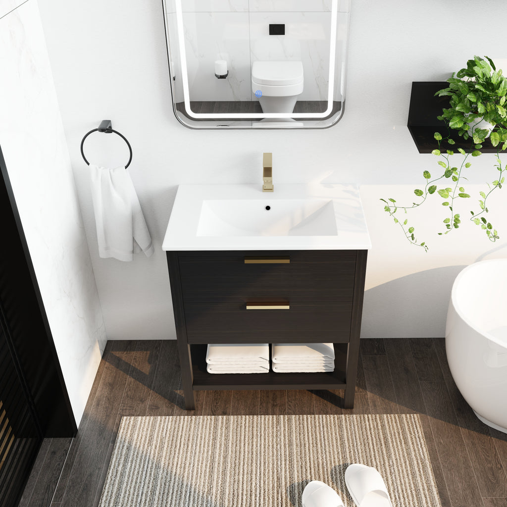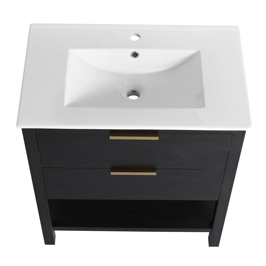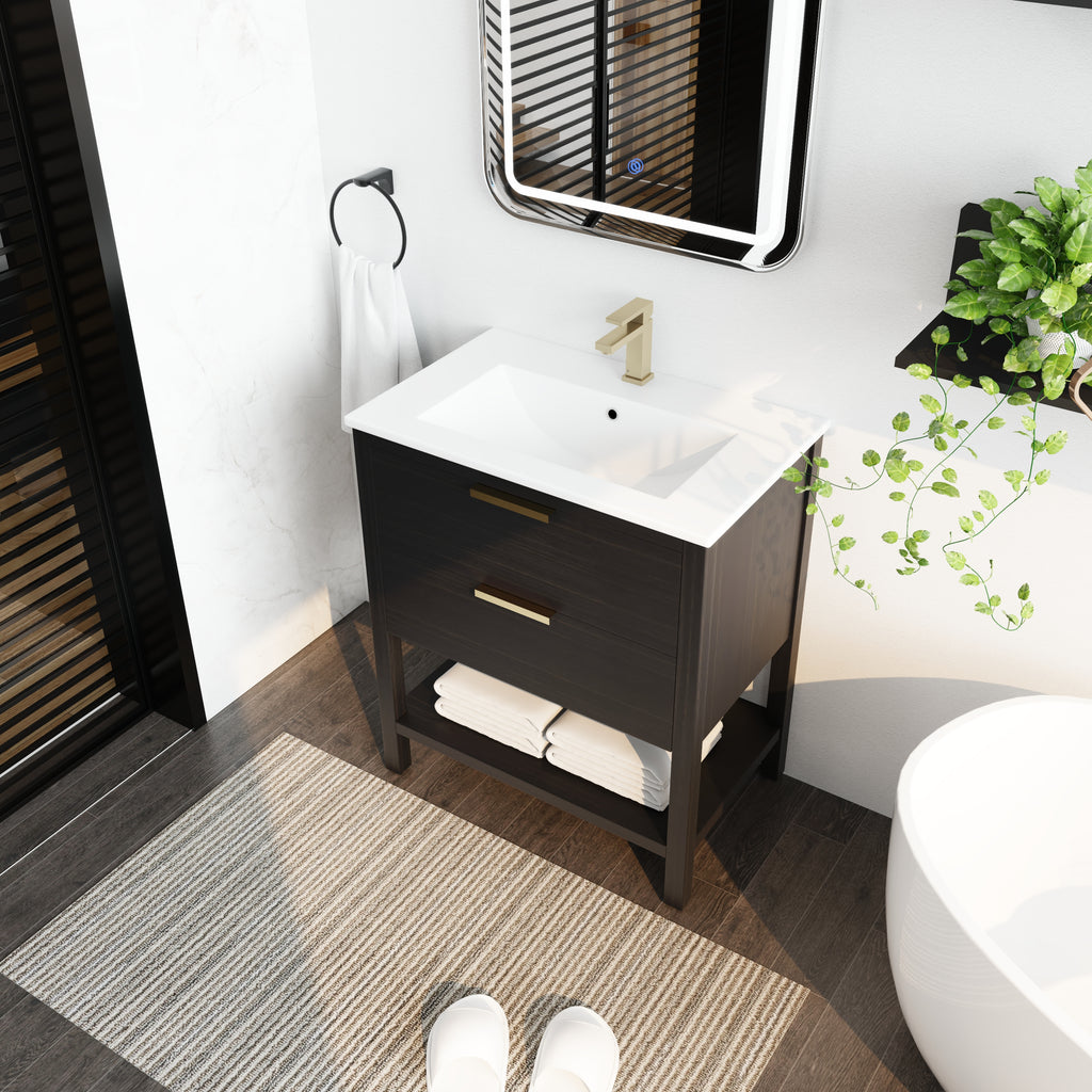 | Package includes | - 1x Vanity Cabinet; - 1x Ceramic Sink; - 1x Shelf; - 4x Wood Feet; - Parts Package |