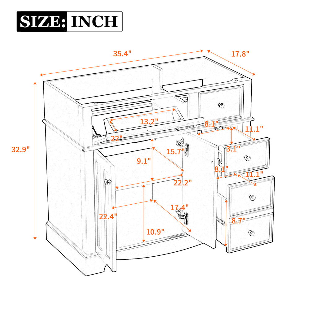 - [ Multi-Purpose Cabinet & Concealed Storage ] Are you looking for stylish and functional storage solutions for your bathroom? Our bathroom vanity provide ample space for all your toiletries and bathroom essentials. The combination of the cabinet body and the drawer perfectly stores all kinds of bathroom products and keeps the necessities away from water stains and dust. Soft-close doors and drawer fronts feature a water-resistant paint finish for durability.
