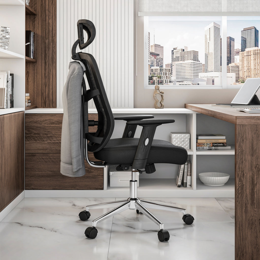 Dive into your workday with this Techni Mobili High Back Executive Mesh Office Chair which fosters productivity and focus. The mesh back and built-in adjustments let you enjoy breathable comfort and a personalized overall feel. You can easily adjust the seat height, 2D armrests, tilt with tension lock mechanism and heavy duty steel base, swivel while working in comfort. Designed in a way to support the natural curve of your back as the sloping seat provide extra comfort during longer working hours. Whether you're responding to emails, evaluating reports or brainstorming with colleagues, this chair provides not only sleek and professional style, but also sophisticated support for all-day comfort. The chair supports weight capacity up to 250lbs.