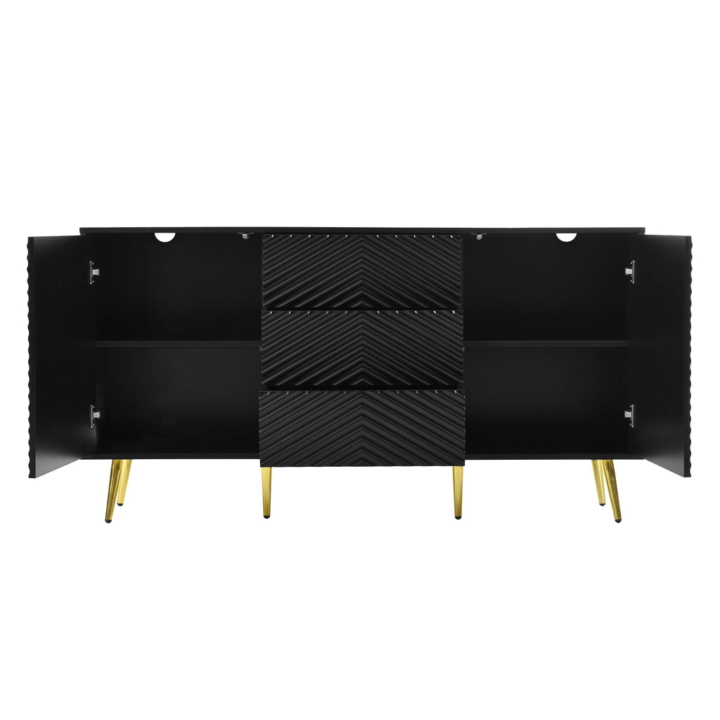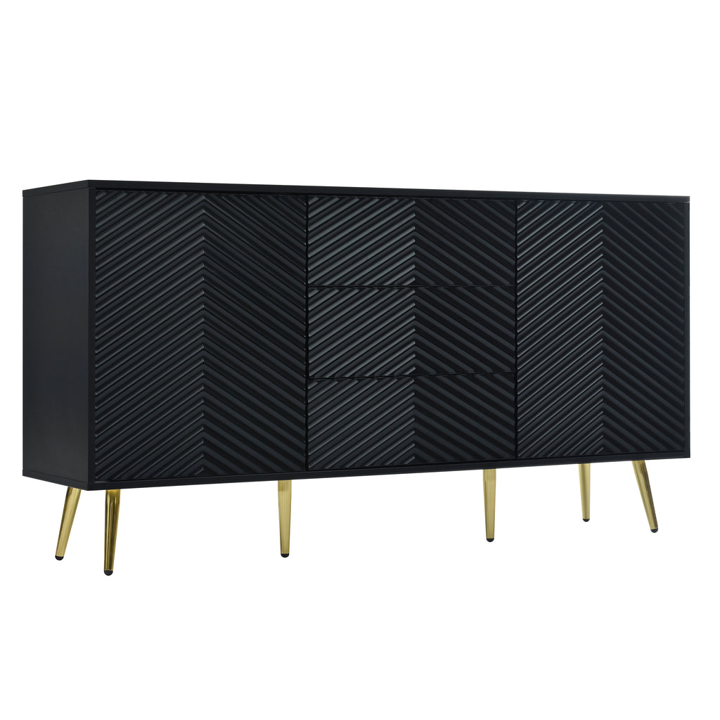 - [Perfect for Any Room]:The combination of its geometric line doors, metal legs, and functional storage makes this sideboard versatile enough to fit in any room. Its modern aesthetic and durable build ensure it will remain a staple in your home for years to come.