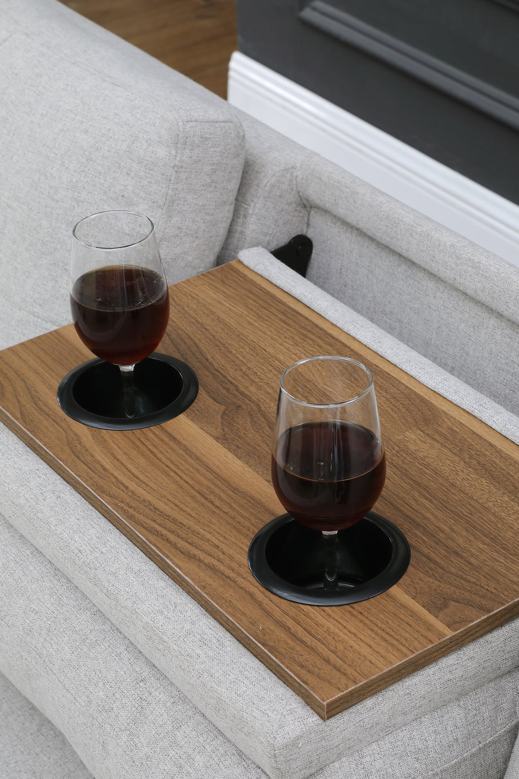 - It has a manufactured wood frame that rests on low-profile dowel legs for a modern look.