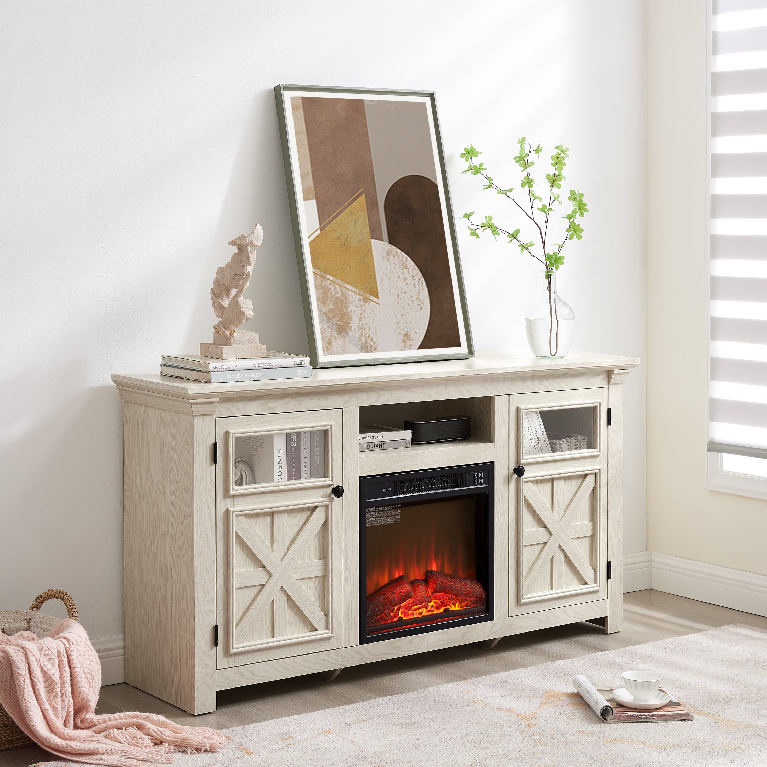 TV Stand Dimensions: 60.23'W*15.35'D*31.7'H Largest TV Size: 65'' Body Color: White Material: MDF + PB Number of Cable Management Cutouts: 6 Number of Adjustable Shelfs: 2 Fireplace Power Rating: 1,400 W / 4,777 BTU Temperature Setting: 62℉to 82℉ Fireplace Timer Setting: 30 minutes – 6 hours Flame Brightness Levels: 3