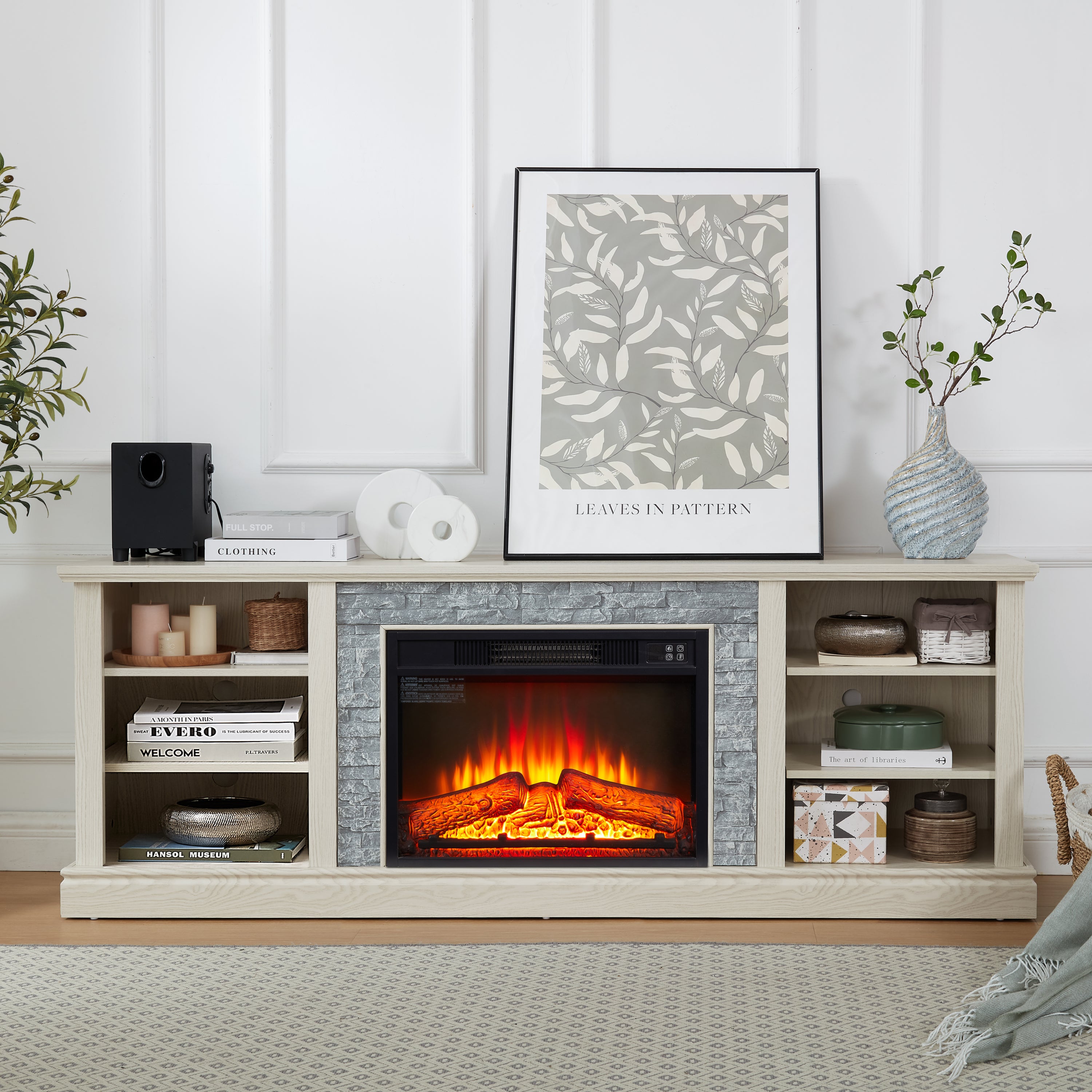 - [Your Home Entertainment Center] With a width of 70.12'', this fireplace provides perfect space for most TVs up to 75'', and ample amount of storage space for all your consoles, DVD players, and any other home entertainment gadgets.