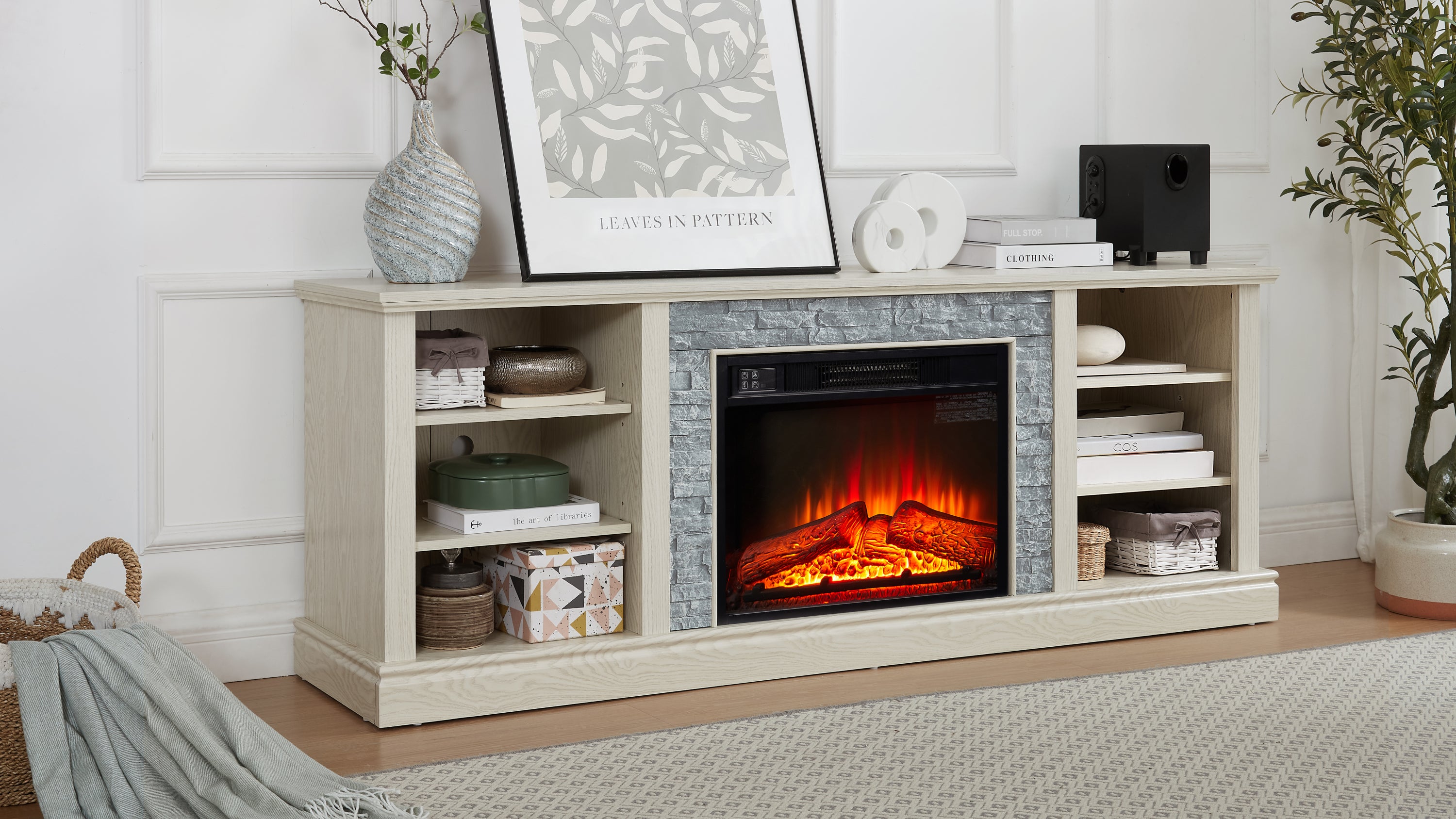 - [Realistic Fireplace Charm, Just Push of a Button Away] Equipped with a remote, the equipped 23' fireplace adds elegant charm to your living space, with or without heat.