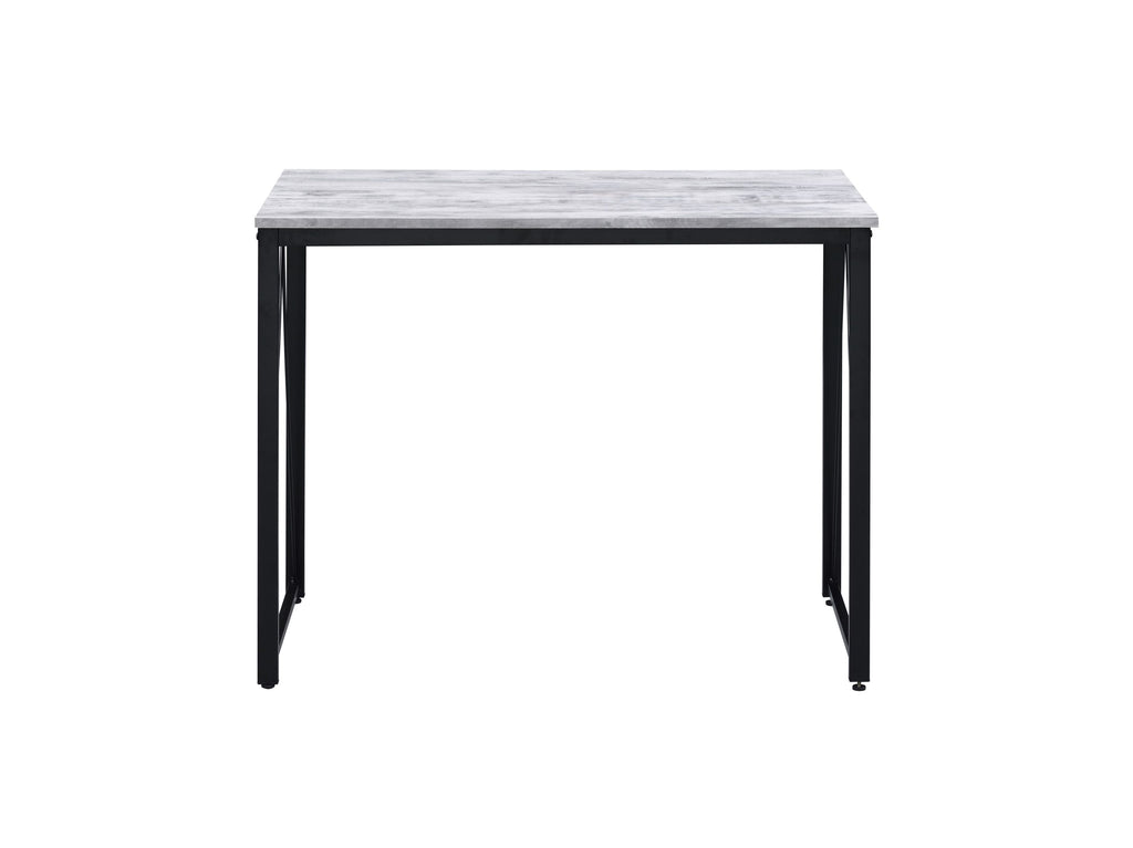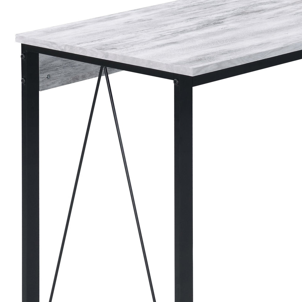 - This writing desk, finished in antique white and black, offers a minimalist yet modern design.