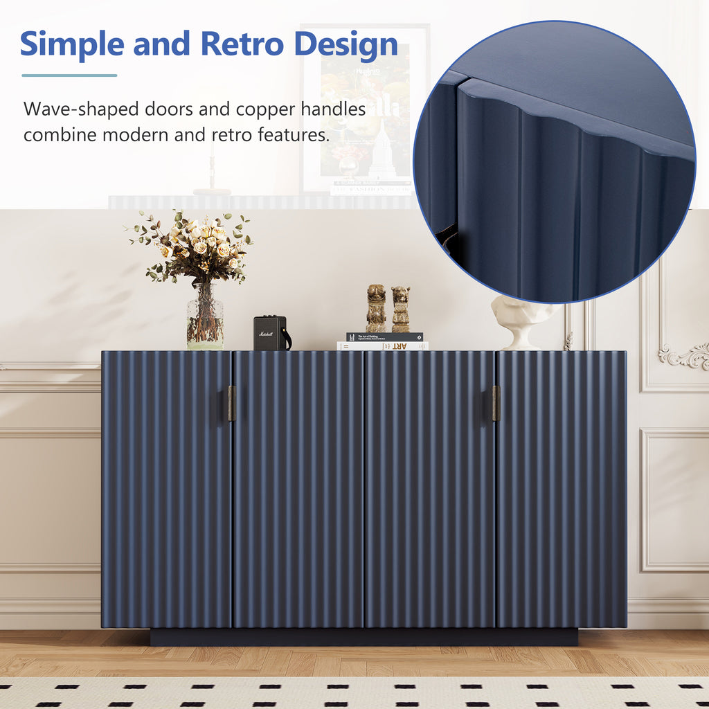 - Simple and Retro Design:This sideboard features 4 beautiful fluted doors that adds a touch of elegance to your area. The unique wave design not only serves as a visual centerpiece but also seamlessly integrates with various interior styles, from contemporary to classic. The smooth lines and finish ensure that this piece stands out, making it a focal point in any room. Enhance the sophistication of your home with this beautifully crafted cabinet that blends function and fashion effortlessly.