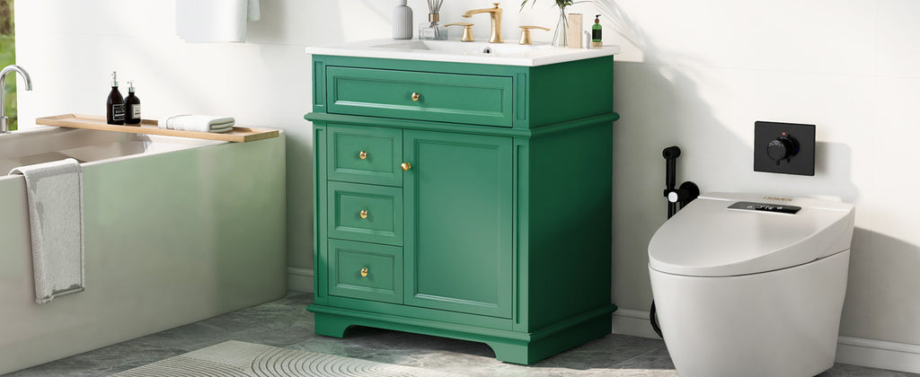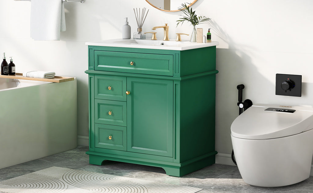 - Material: Practicality and durability is important to bathroom facilities, so we use real wood and MDF boards for this product, which not only increases the product stability but also ensures a long-lasting use. Furthermore, the surface of this vanity cabinet is in painted finish. It is easy to clean.