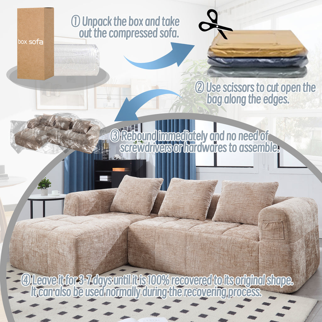 - 4.Innovative assembly free installation: The use of advanced assembly compression technology, sofa in the transportation process of efficient compression, after delivery to your home, without complex installation steps and tools, just easily unpack, you can quickly have a complete and comfortable sofa. Save your valuable time and energy, easily open a new chapter of comfortable home life, let convenience everywhere.