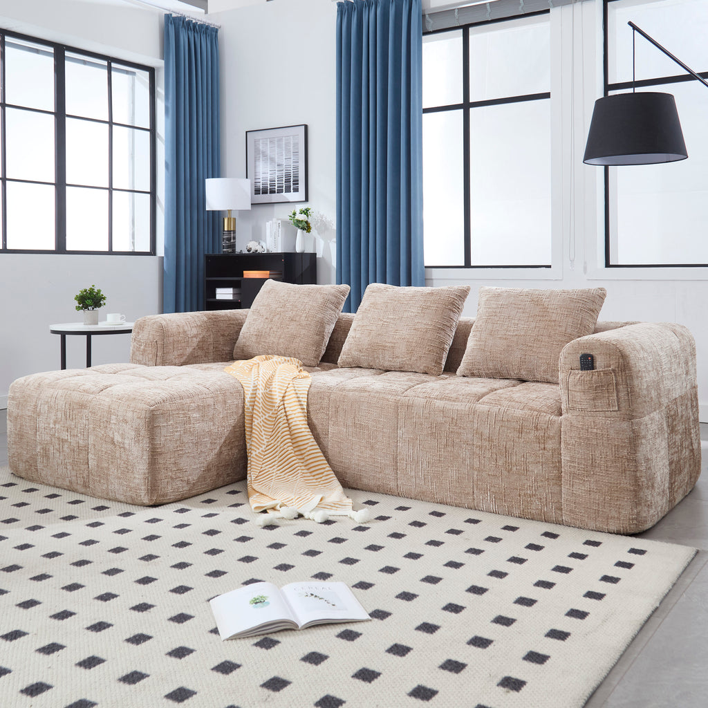 - 3.Intimate side pocket: The side of the sofa is cleverly equipped with practical small pockets, convenient for you to store daily small objects at any time. Whether it is the remote control for watching TV, reading books and magazines, or the tablet computer at work, it can be reached at your fingertips to avoid the loss of items, so that your home life is more organized, easy to enjoy the perfect combination of convenience and comfort.