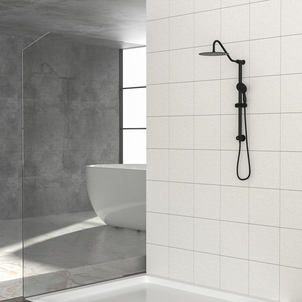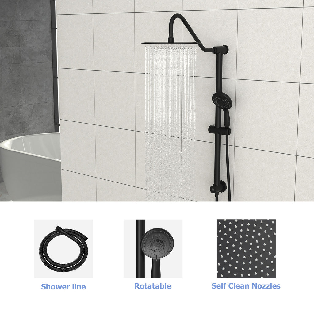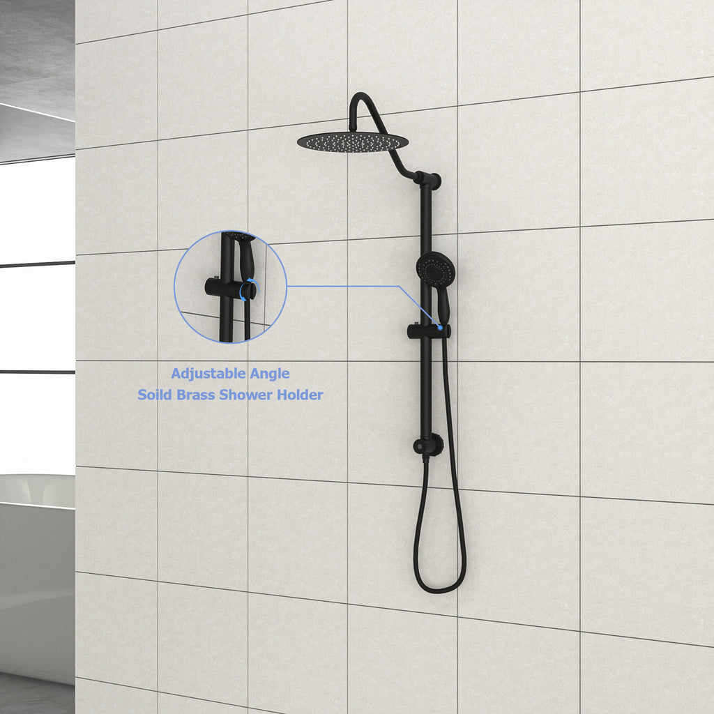 - {Included Components} 10 inch shower head, adjustable hand-held shower, 59 inch stainless steel shower hose, 23.3 inch adjustment rod, shower arm with enamel cover,Parts and installation instructions.