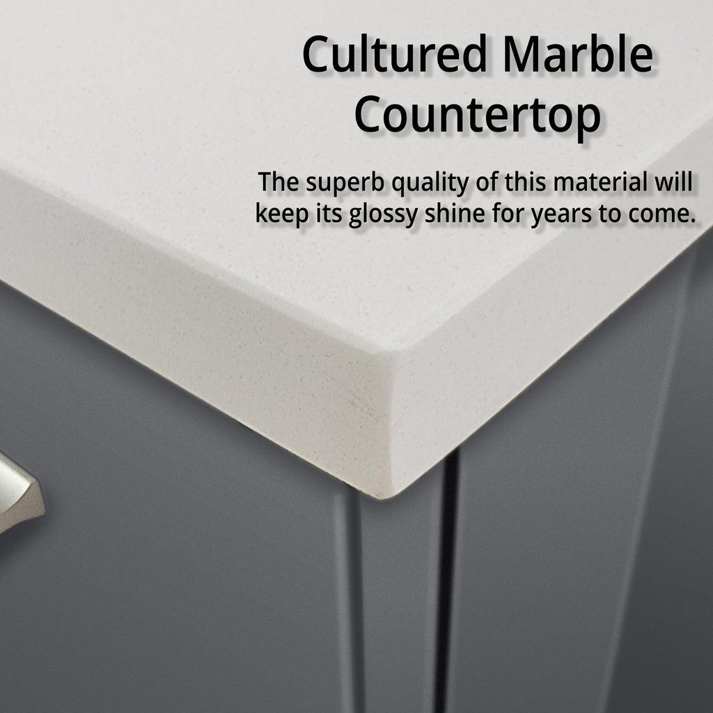 36" Dark Grey Bath Vanity: Marble Top & Faucet