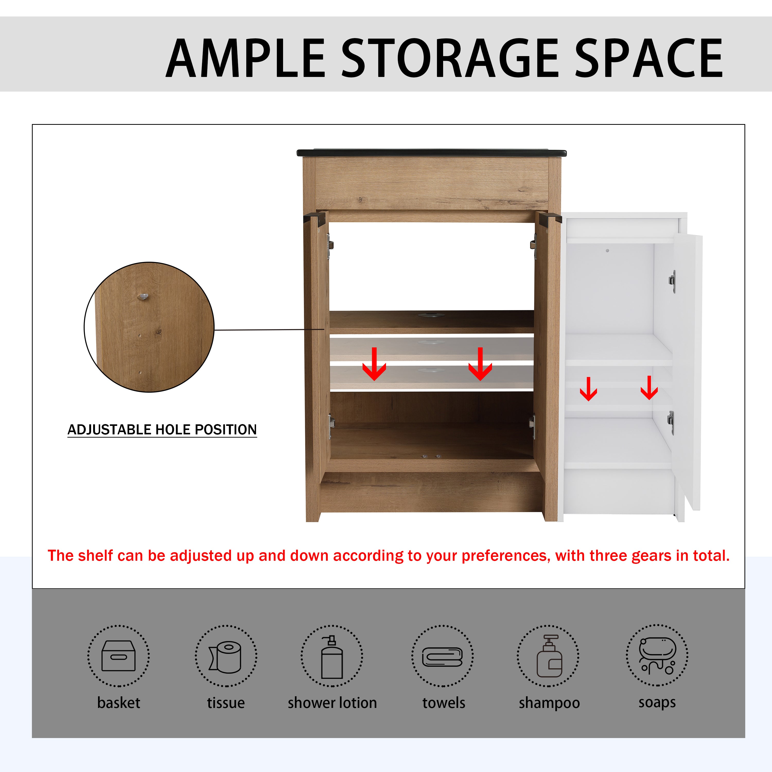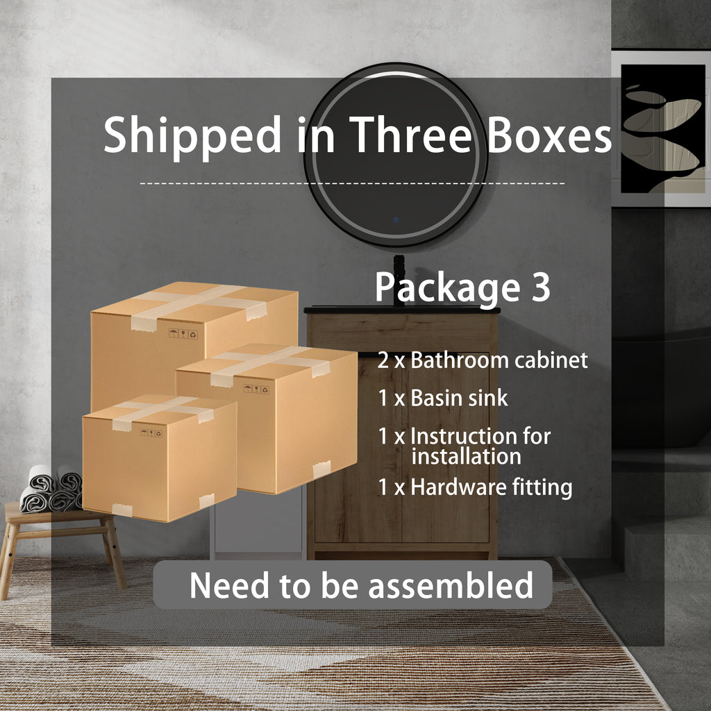 | Package includes | -1x Vanity Cabinet; -1x Black Ceramic Basin; -1x Storage Cabinets; -2x Metal Handle; Parts Package |