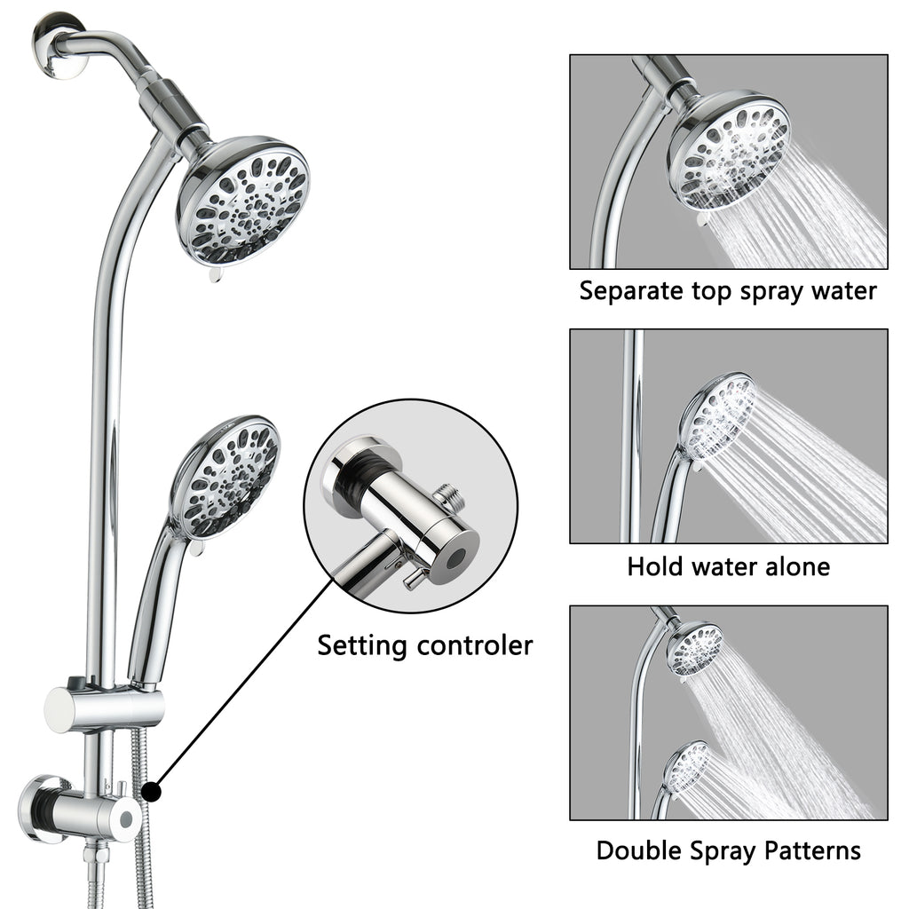 - The ultimate dual shower head luxury spa system can be fully adjusted according to your height and activity needs.