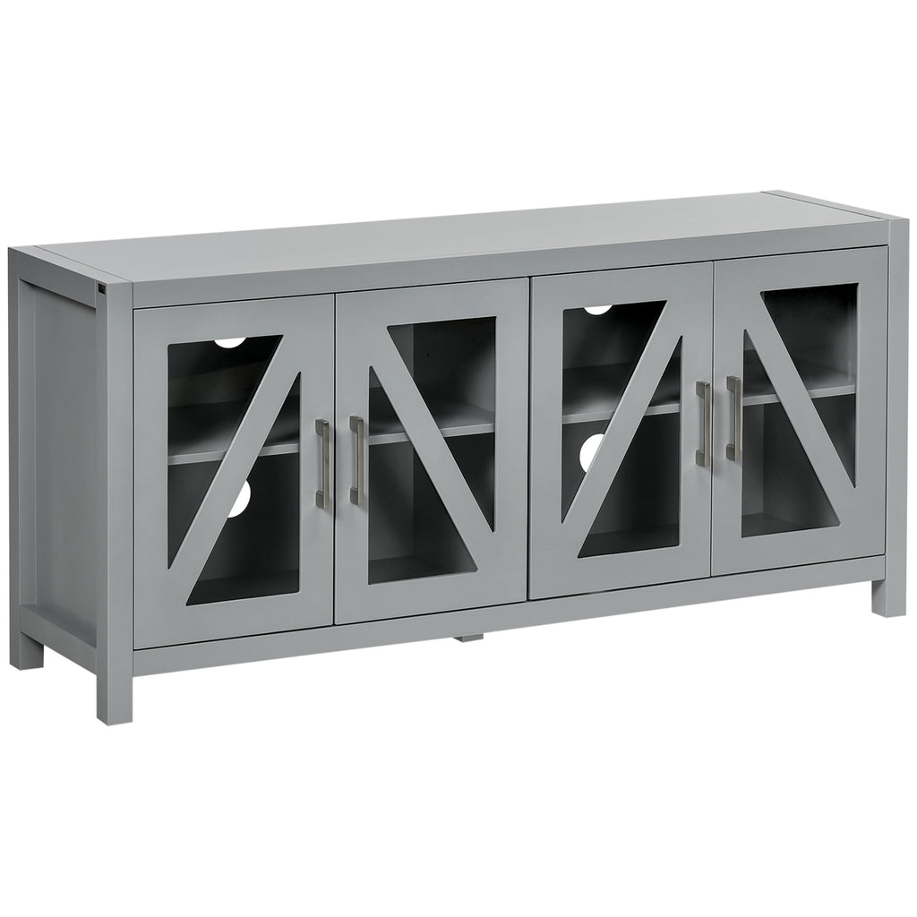 - Minimalist Style: The ideal TV table serves its purpose and looks good doing it. Our entertainment stand has framed glass doors that pair well with a variety of furniture styles.