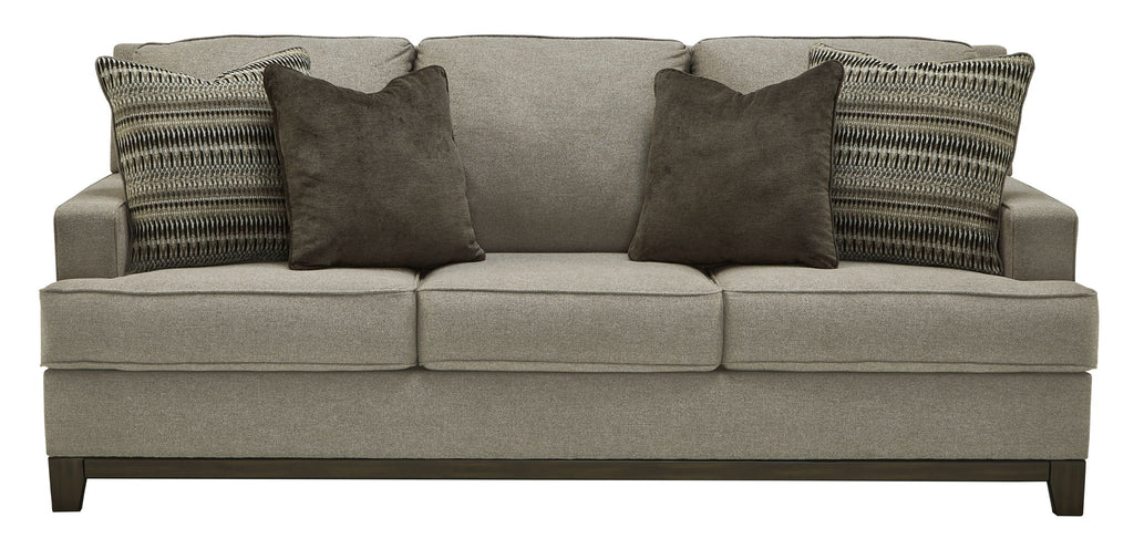 Whether your style is American classic, contemporary or an eclectic mix, this beautifully versatile sofa is sure to look right at home. Distinctive elements include an exposed rail, designer accent pillows and decadent woven upholstery in a rich neutral shade inspired by tailored menswear.