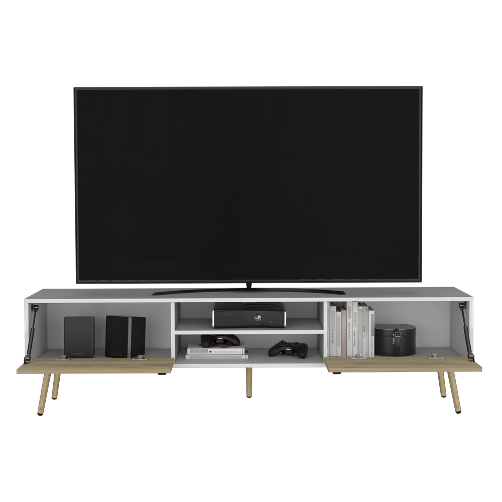 - Generous Shelving: Two open shelves (23.6'W x 15.3'D) for easy access to media components.