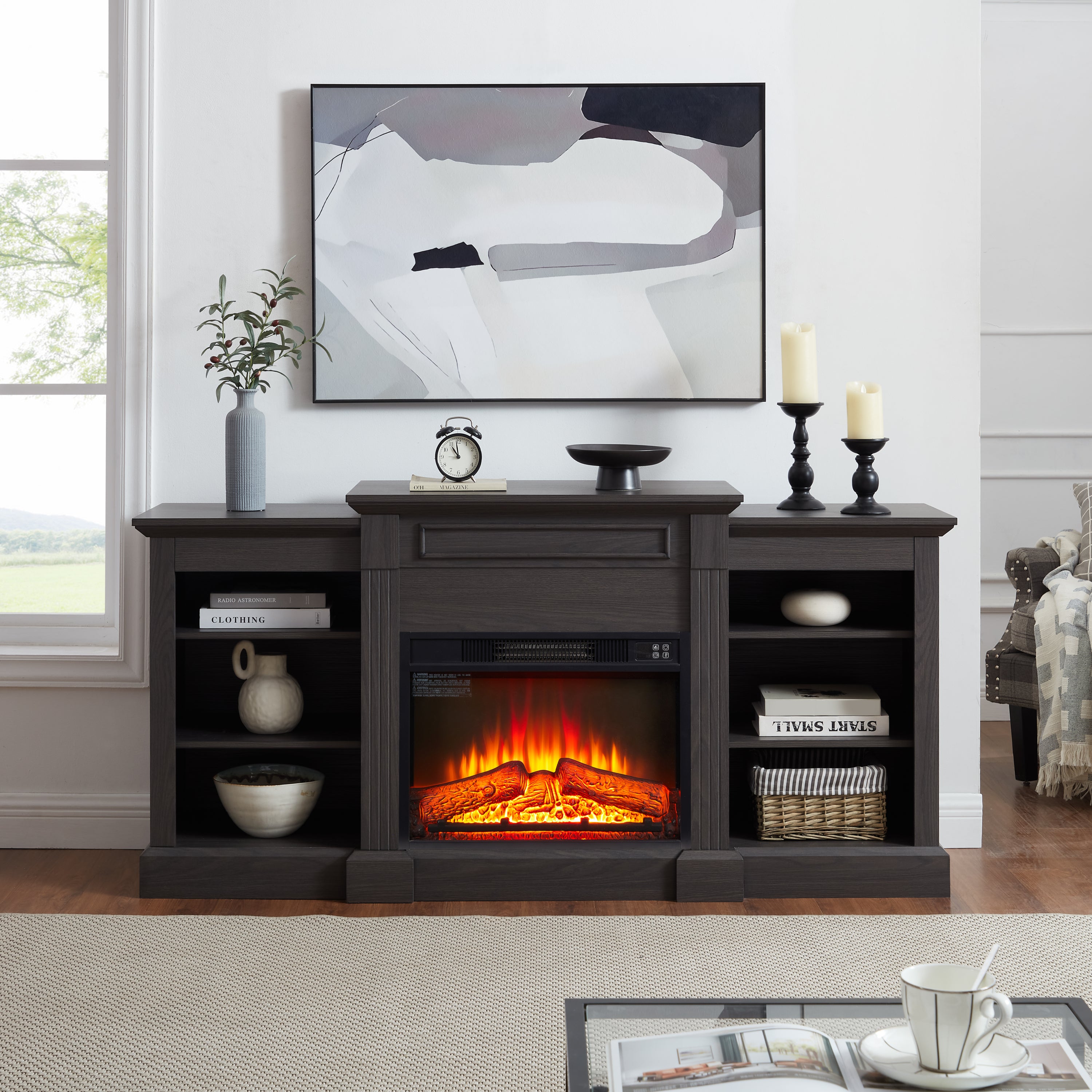 TV Stand Dimensions: 65.75'W*17'D*32.48'H Largest TV Size: 65'' Body Color: Grey Material: MDF + PB Number of Cable Management Cutouts: 2 Number of Adjustable Shelfs: 4 Fireplace Power Rating: 1,400 W / 4,777 BTU Temperature Setting: 62℉to 82℉ Fireplace Timer Setting: 30 minutes – 6 hours Flame Brightness Levels: 3